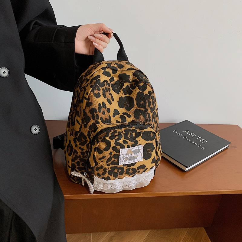 复古豹纹小双肩包女2025新款美式ins小众甜酷大学生迷你背包女士