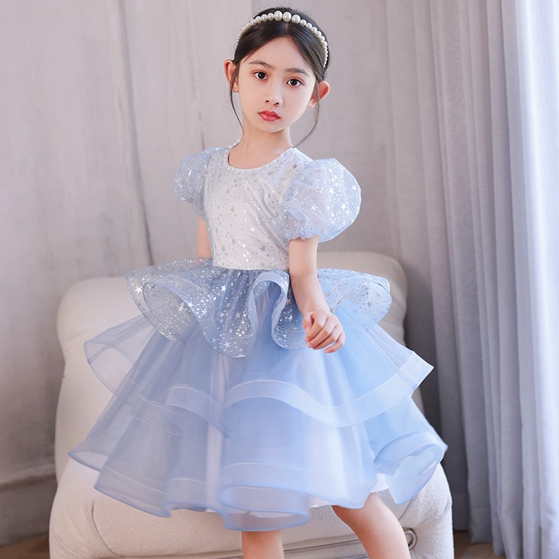 公主裙女童夏季蓬蓬纱裙2024新款花童婚纱女孩主持人钢琴演出服