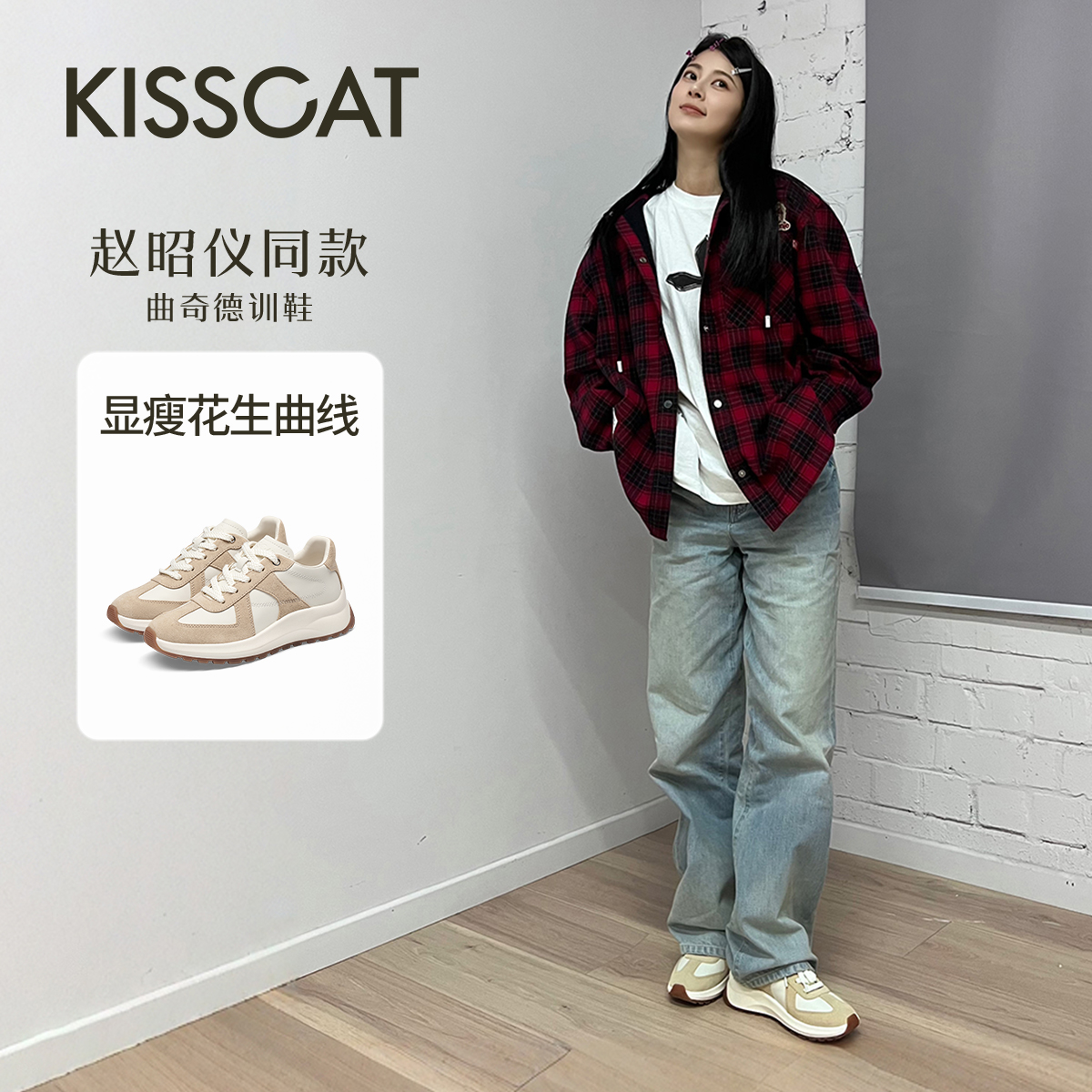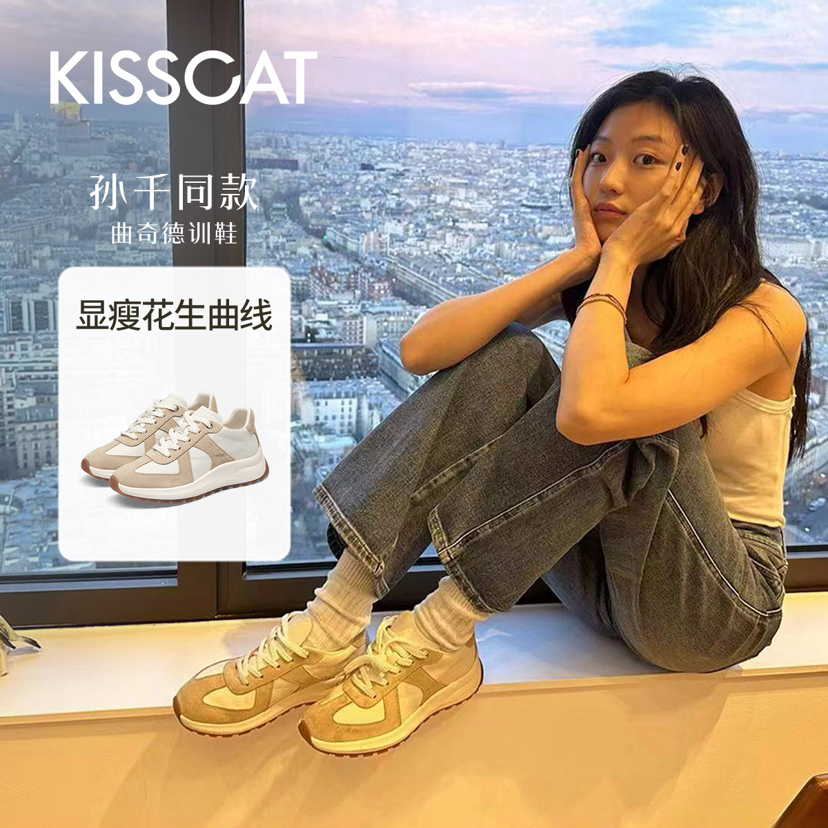 [孙千/露思/白鹿同款]接吻猫曲奇德训鞋阿甘鞋厚底德训鞋小白鞋女