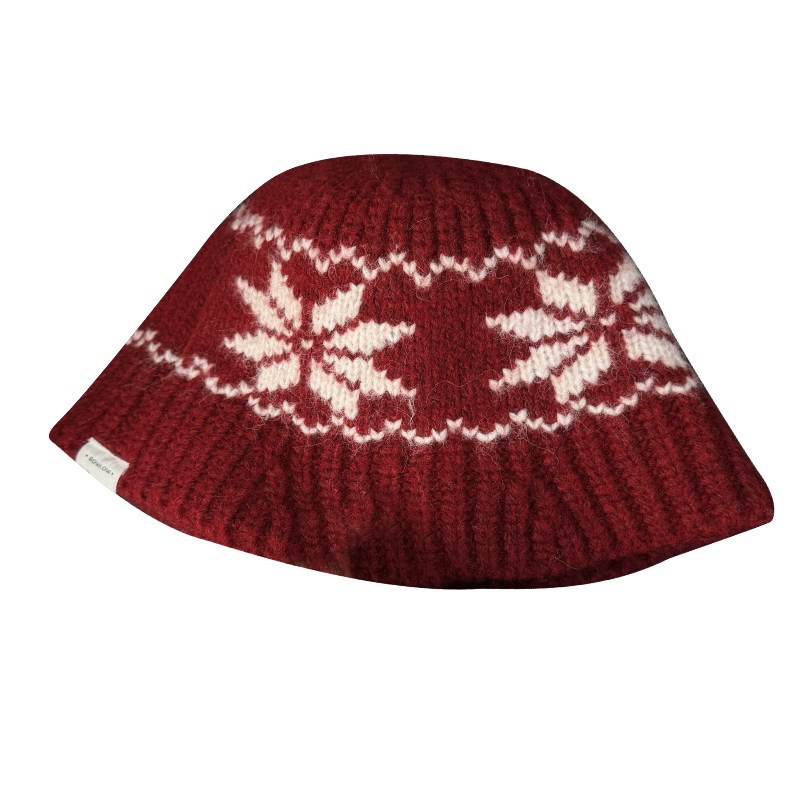 2025新款费尔岛风复古雪花针织渔夫帽女秋冬民族风保暖防寒毛线帽