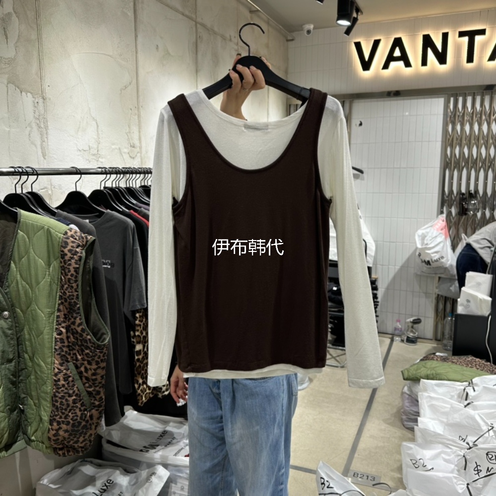 VANTA韩国东大门正品代购25冬款 圆领休闲背心T恤两件套上衣套装