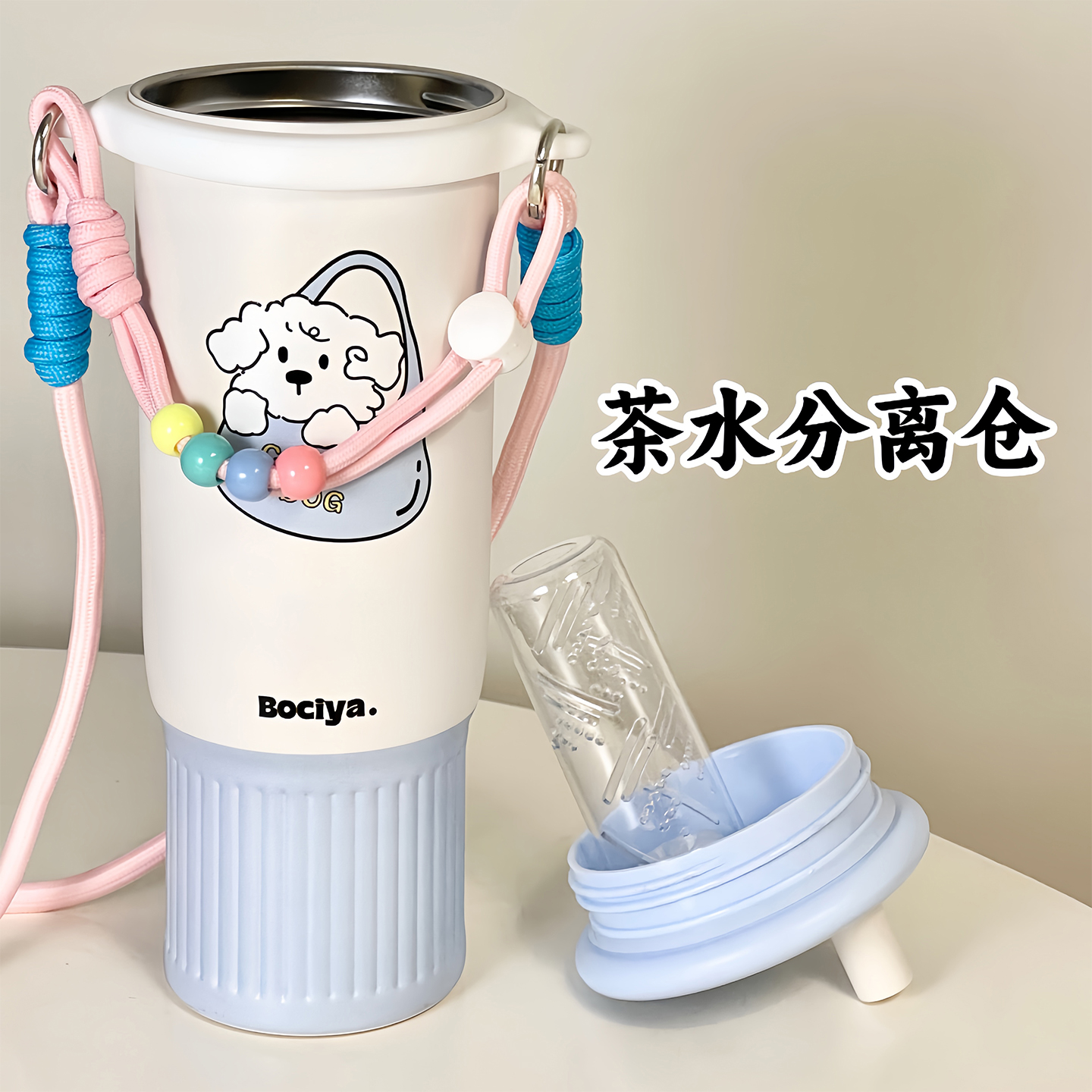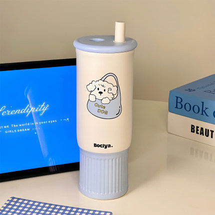 吸管保温杯背带便携大容量水杯女生高颜值新款不锈钢冰霸保冷杯子