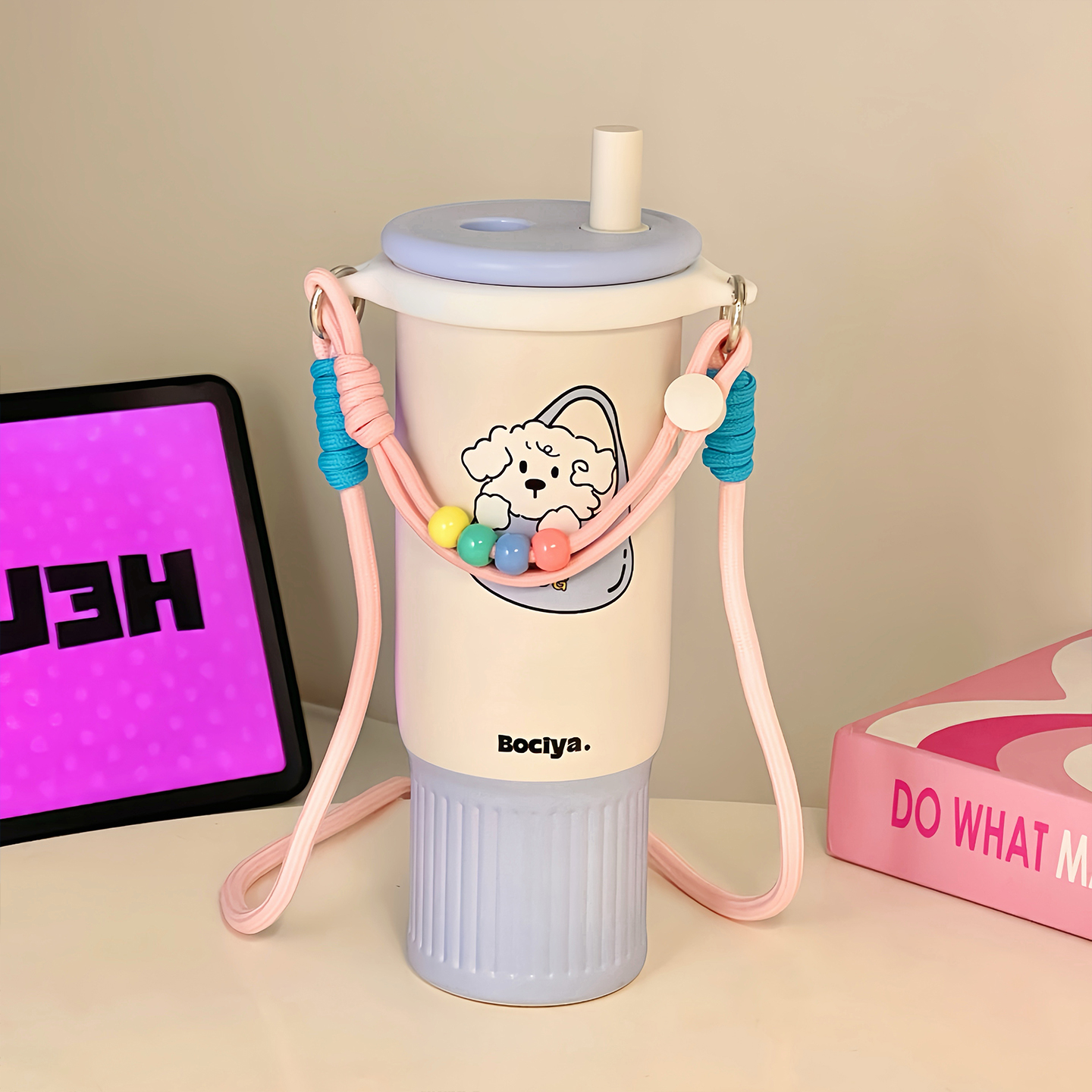 背带吸管保温杯女生高颜值冰霸杯