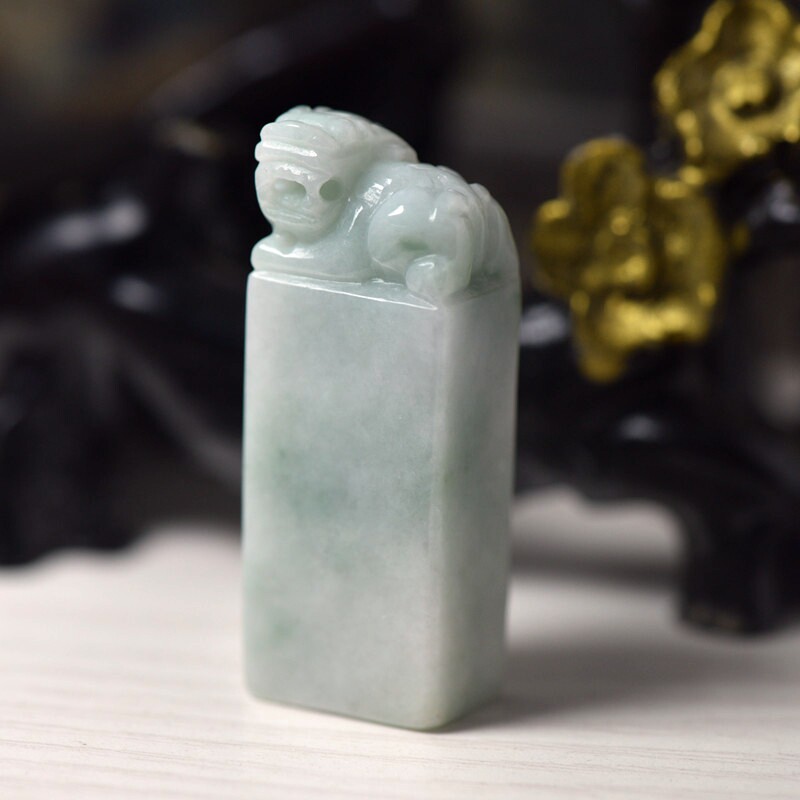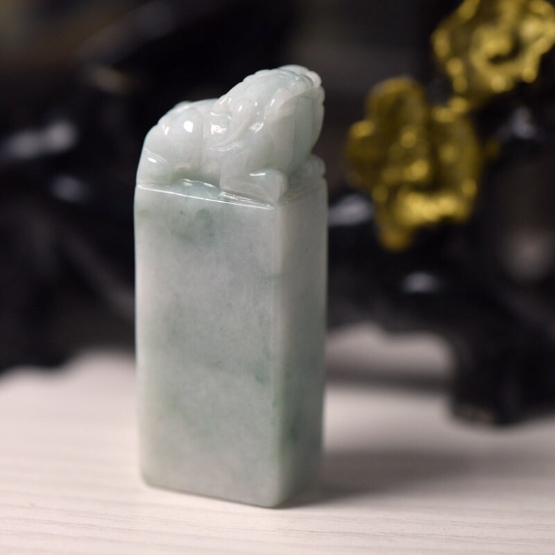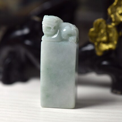缅甸翡翠貔貅印章摆件附证书