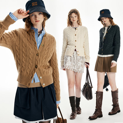 【代工渠道】经典绞花毛衣 厚实保暖80羊毛20羊绒针织开衫外套女