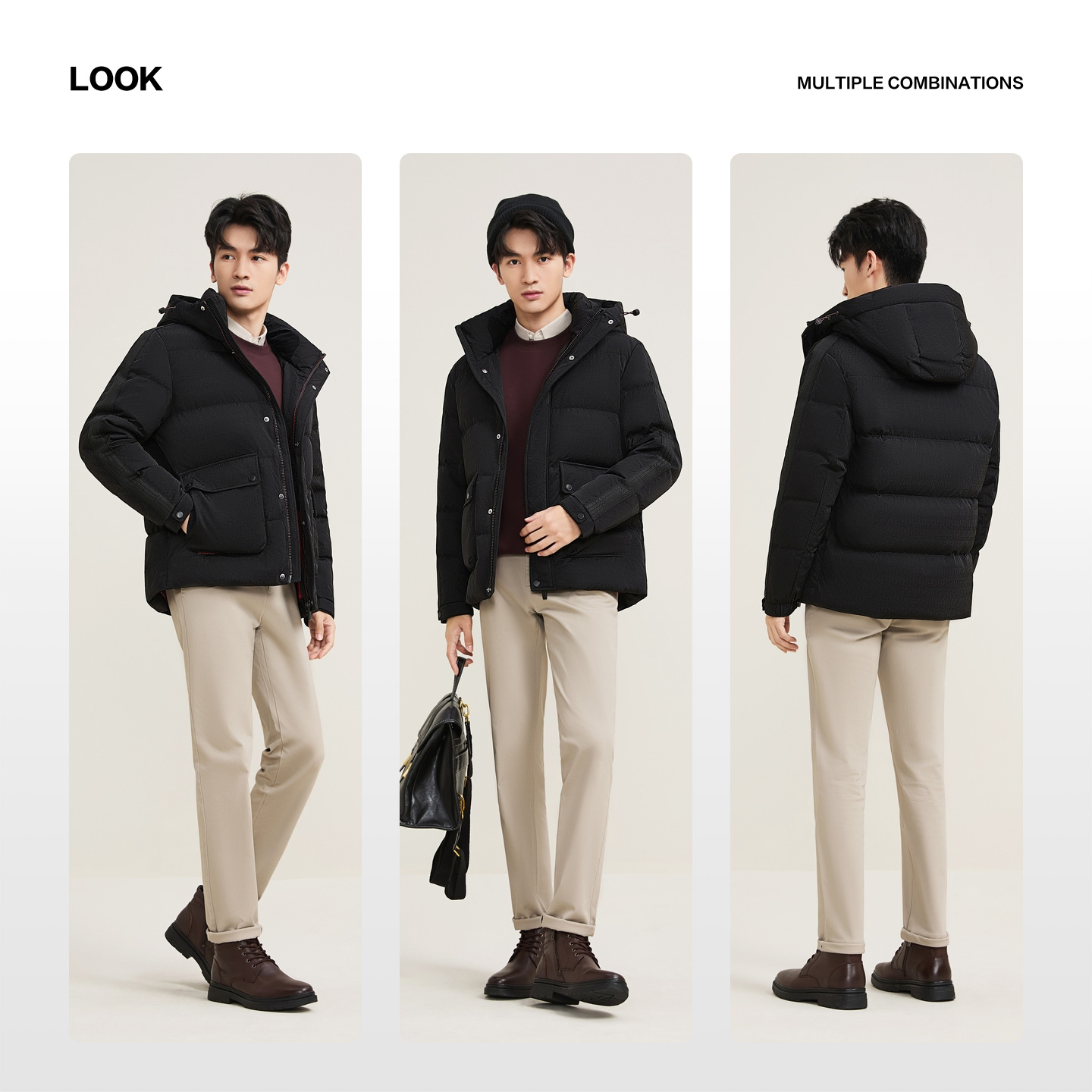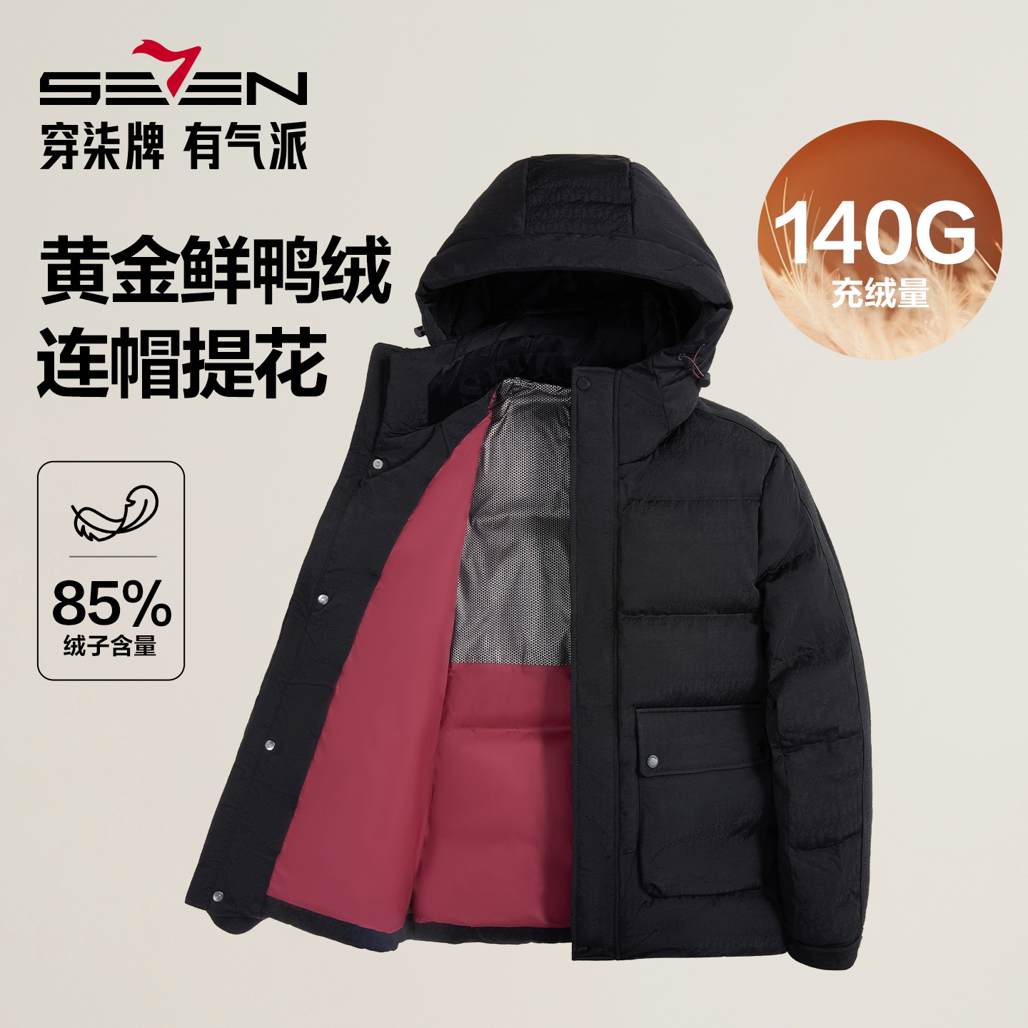 【鲜羽绒认证】柒牌连帽羽绒服男2025冬季加厚保暖白鸭绒防风外套
