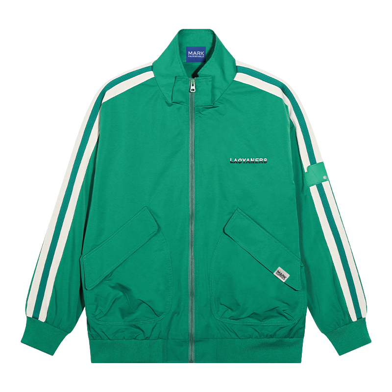 马克华菲夹克男春秋季新款侧条纹潮流拉链开衫外套宽松休闲风衣