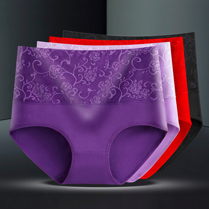 4条高腰大码纯棉女内裤女士提臀棉质收腹胖mm中腰透气全棉裤头