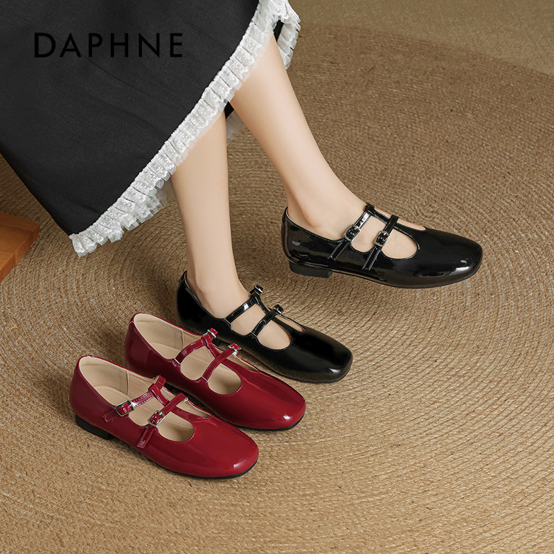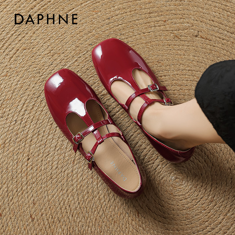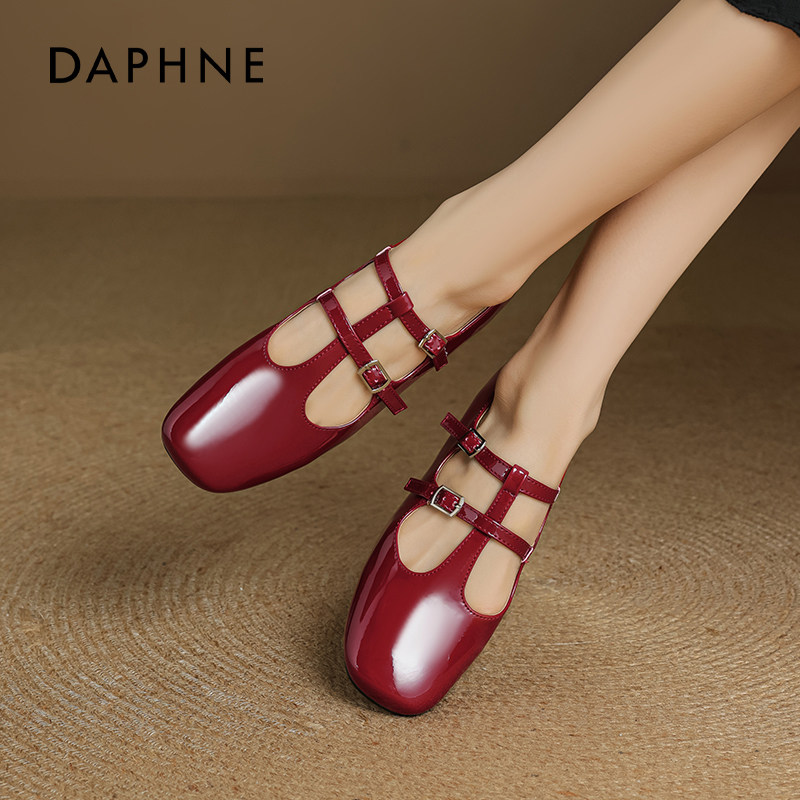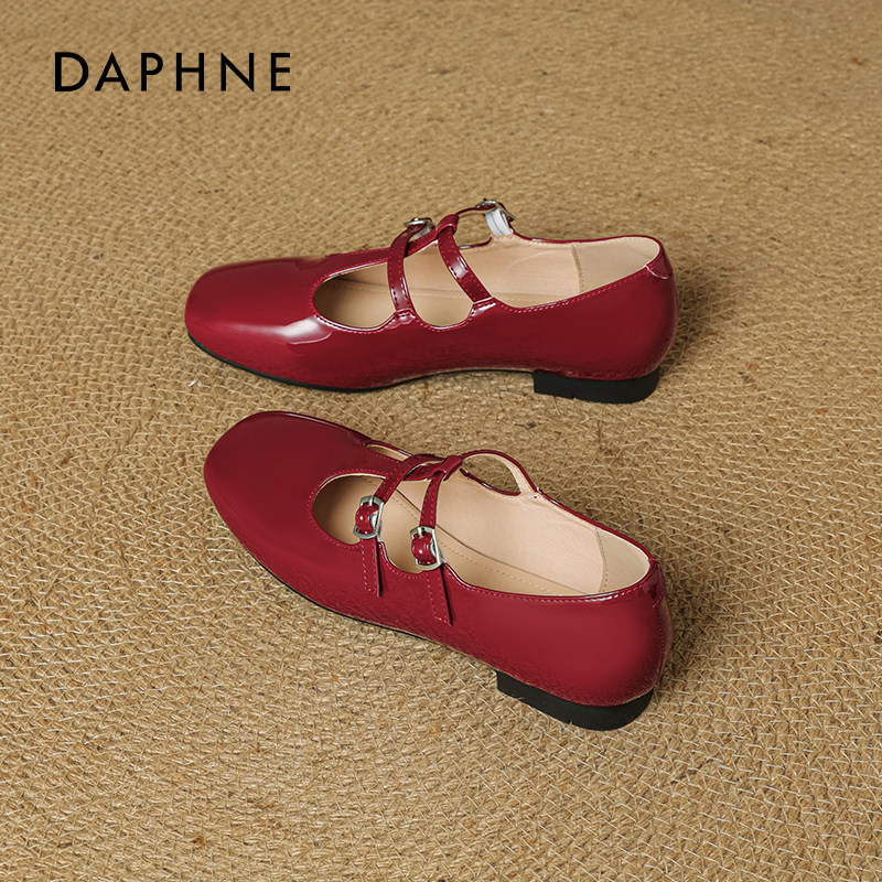 达芙妮红色单鞋女2026春季新款绝美芭蕾玛丽珍鞋配裙子平底小皮鞋
