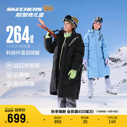 Skechers斯凯奇童装冬季儿童新款加厚长款羽绒服男女童保暖外套
