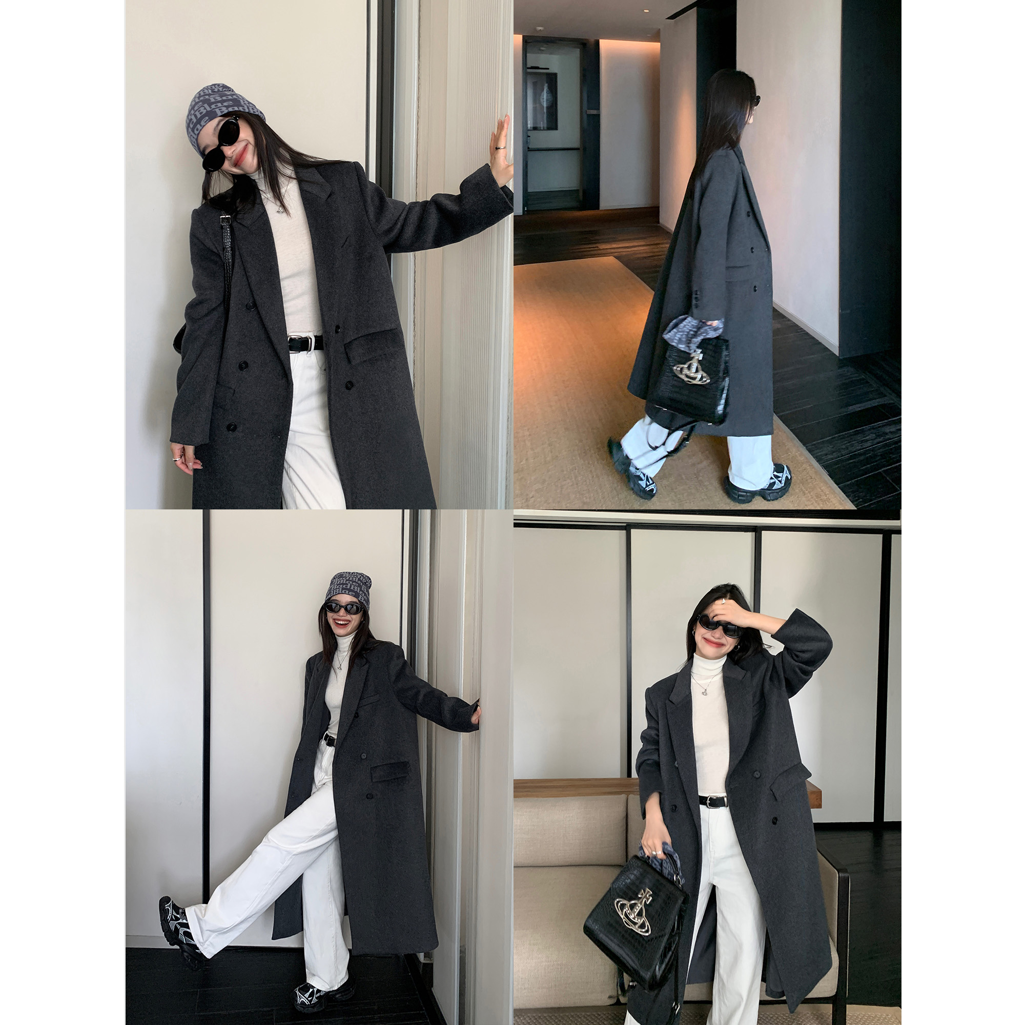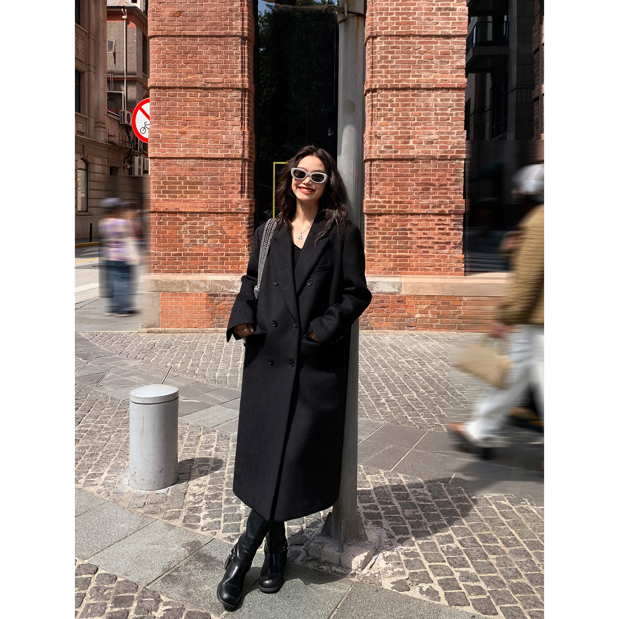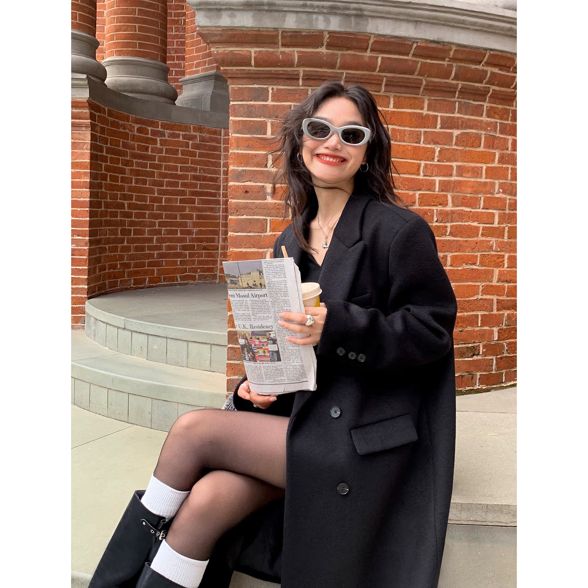 pusumede咖色毛呢外套女秋冬2025新款宽松休闲高级感气质呢子大衣