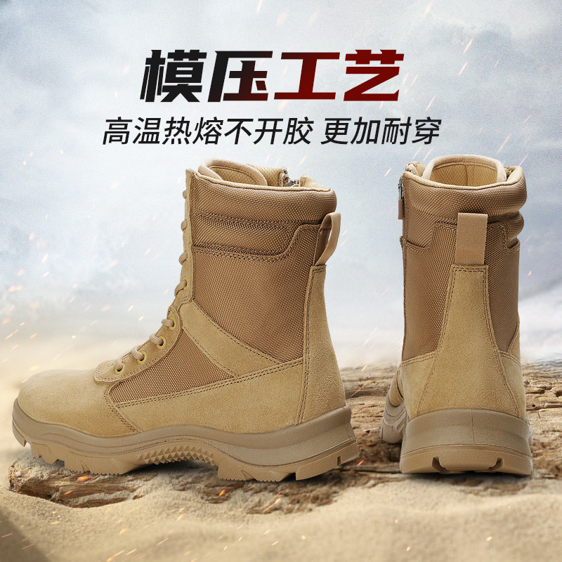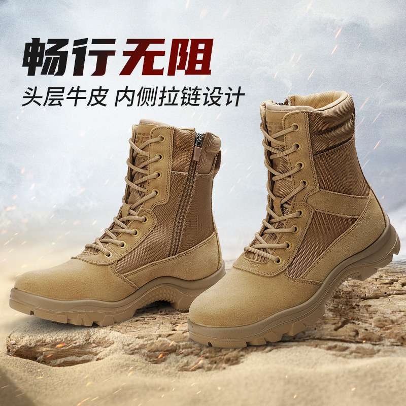 际华3515新式棕色靴男真皮户外训练靴高帮工装靴沙漠靴侧拉链男靴