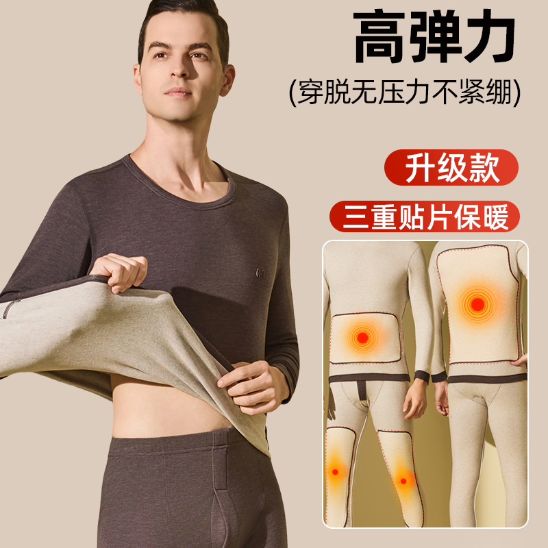 恒源祥保暖内衣男士套装加绒厚款发热含蚕丝秋衣秋裤内搭冬季