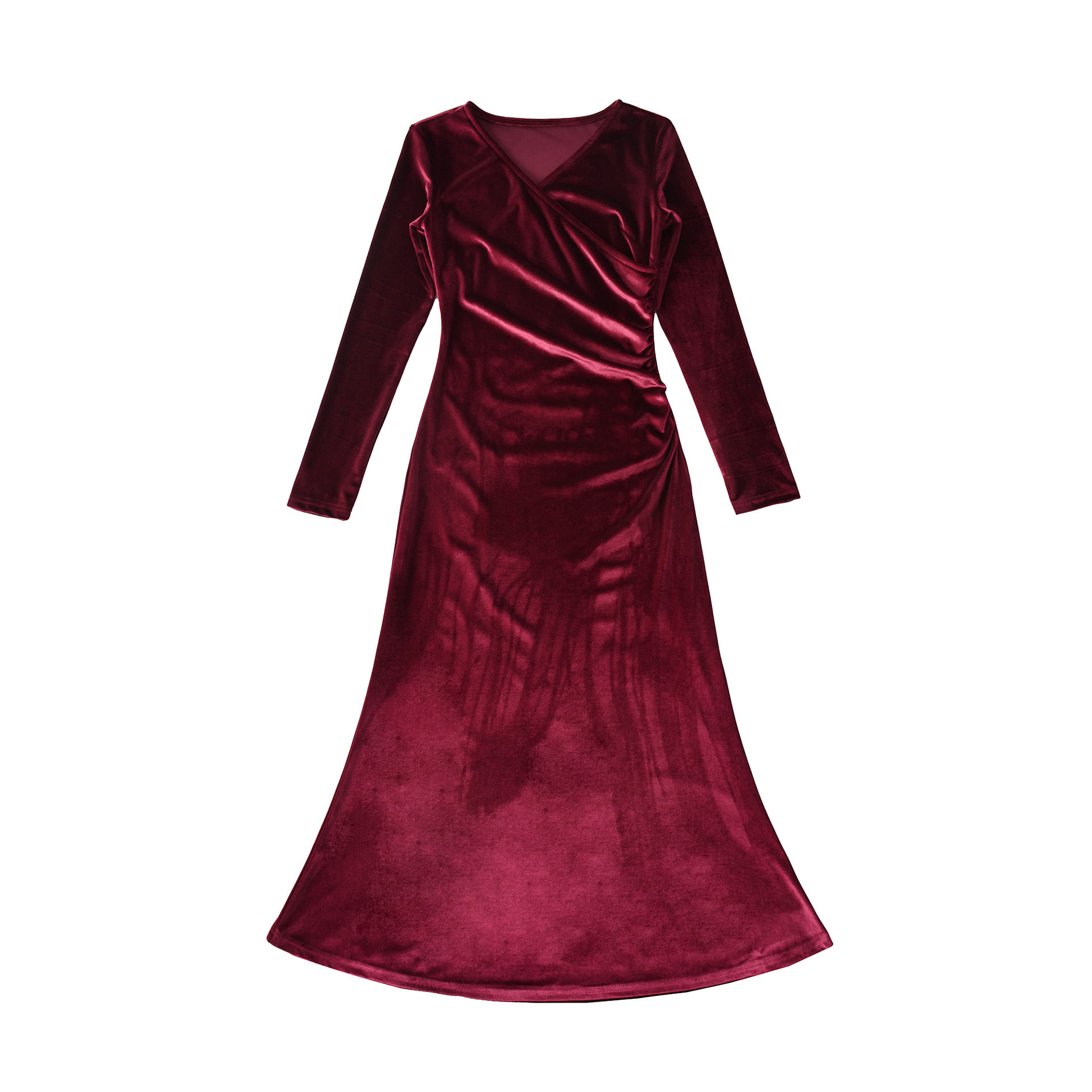 高级感丝绒修身显瘦连衣裙时尚洋气显瘦V领瘦赫本风A字裙2025秋冬