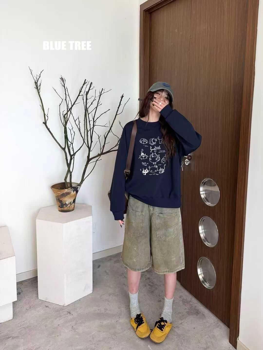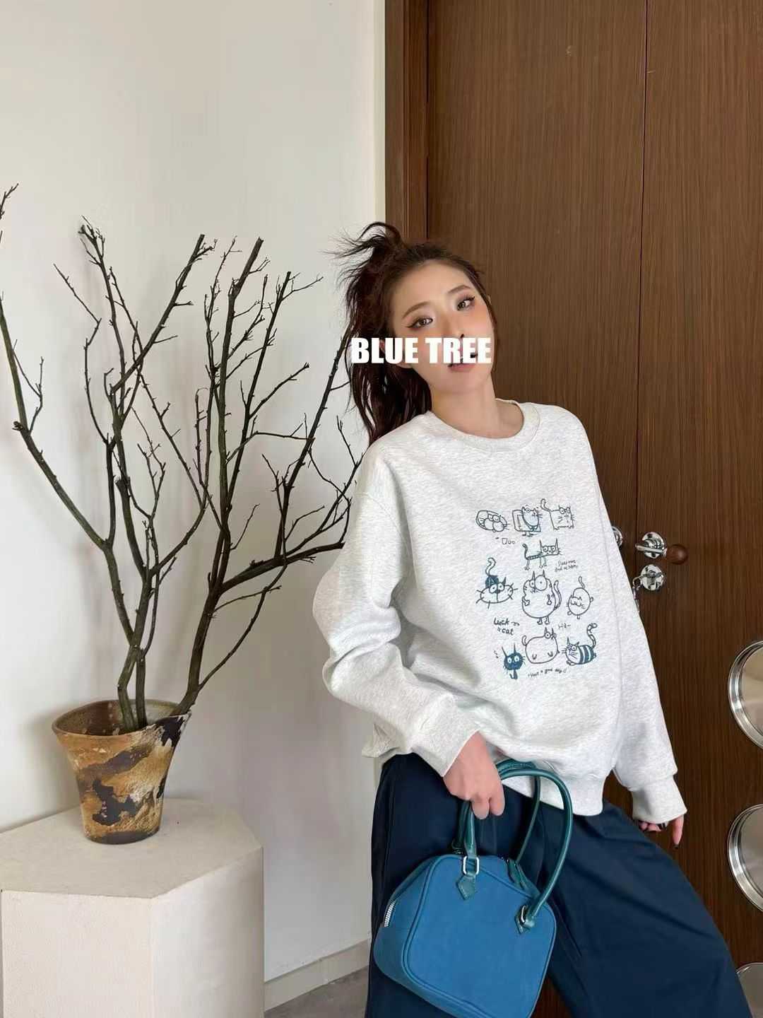 BLUETREE正品2025秋季新款设计感刺绣卫衣大码显瘦宽松上衣韩版潮