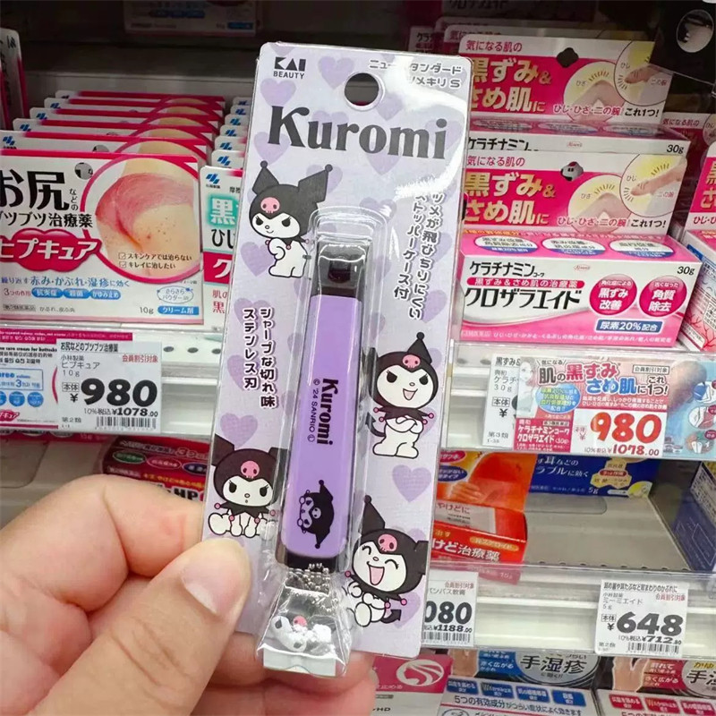 日本贝印KAI三丽鸥kitty库洛米玉桂狗指甲刀指甲钳防飞溅不锈钢