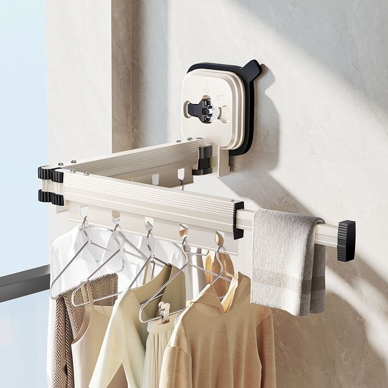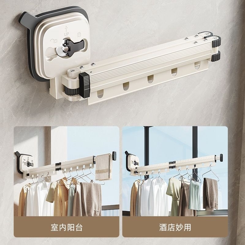 简约吸盘折叠晾衣架阳台隐形伸缩晾衣杆室内家用挂衣架飘窗晒衣架