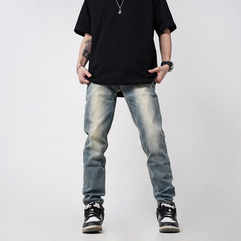 Z POCKET高街美式水洗欧美蓝色修身牛仔裤男款潮牌男休闲小脚裤子