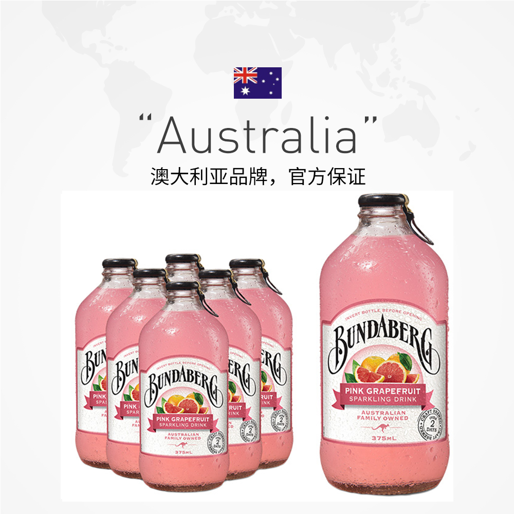【自营】bundaberg宾得宝澳洲葡萄柚果汁味气泡水进口汽水饮料6瓶