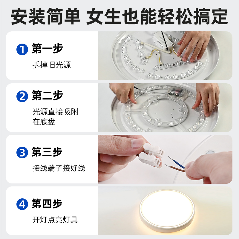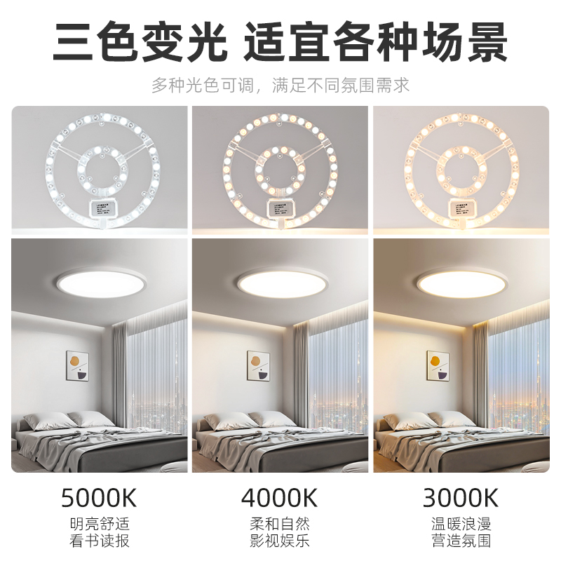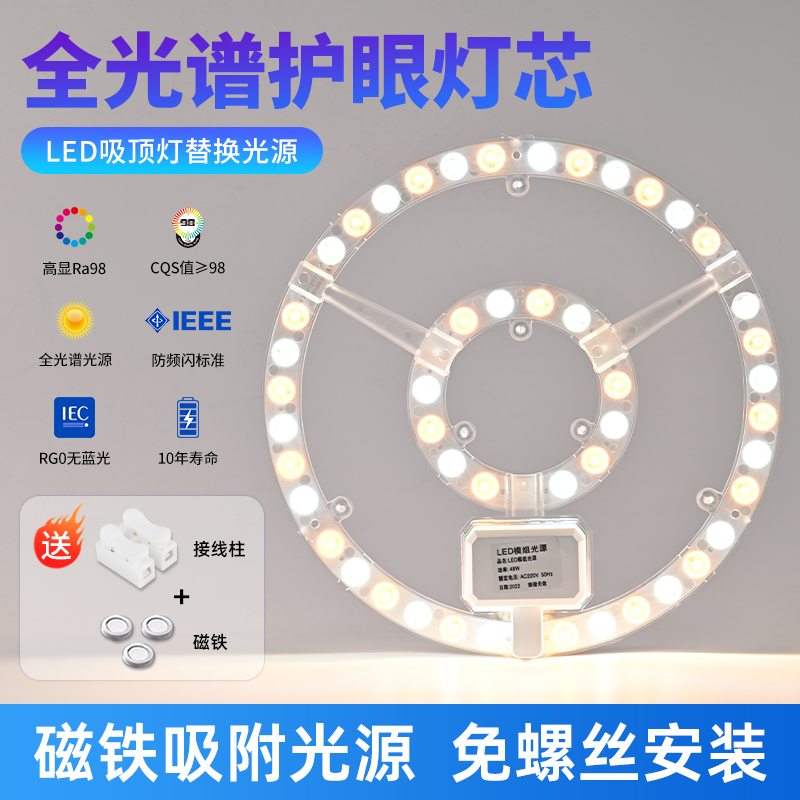 led灯芯替换全光谱吸顶灯风扇灯盘改造灯板三色护眼磁吸光源模组