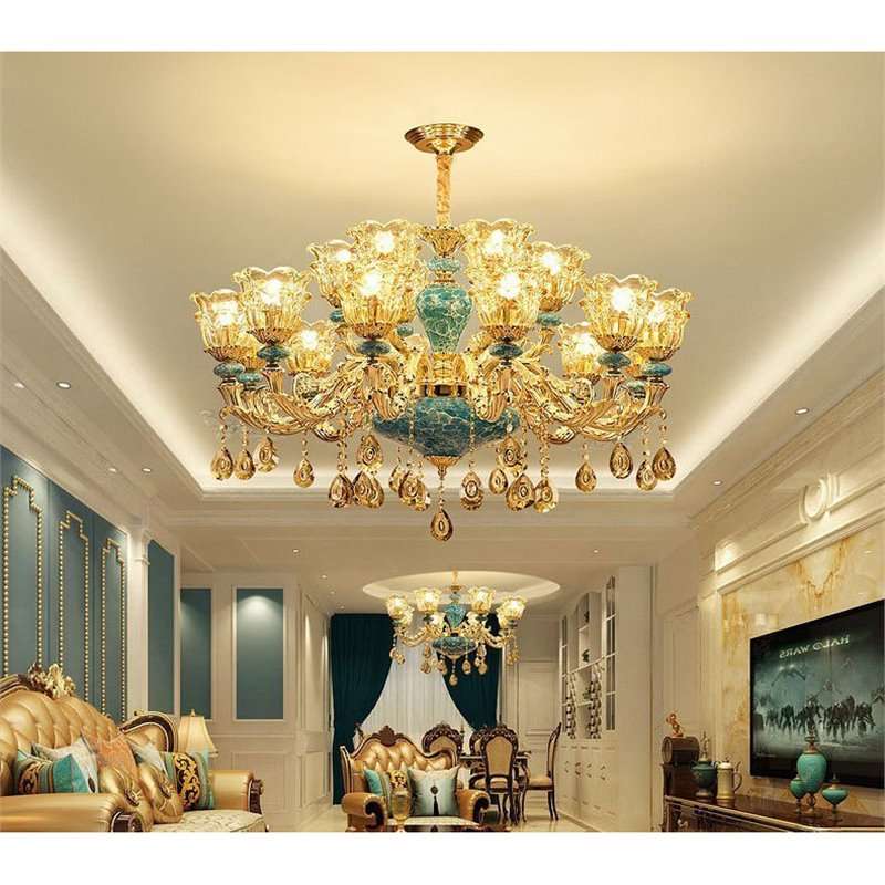 复式楼大吊灯别墅客厅三层陶瓷水晶灯欧式楼中楼大厅楼梯间长吊灯
