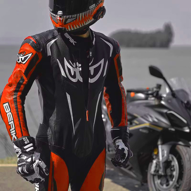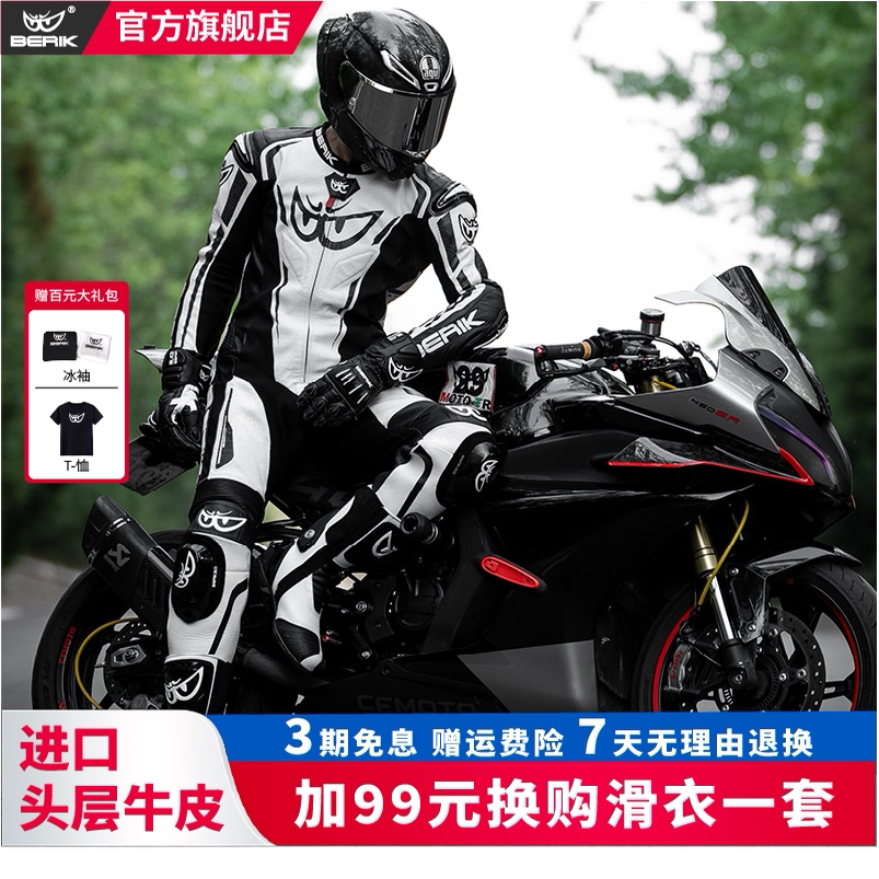 berik连体皮衣大眼摩托车骑行服竞技赛道机车服比客男透气赛车服