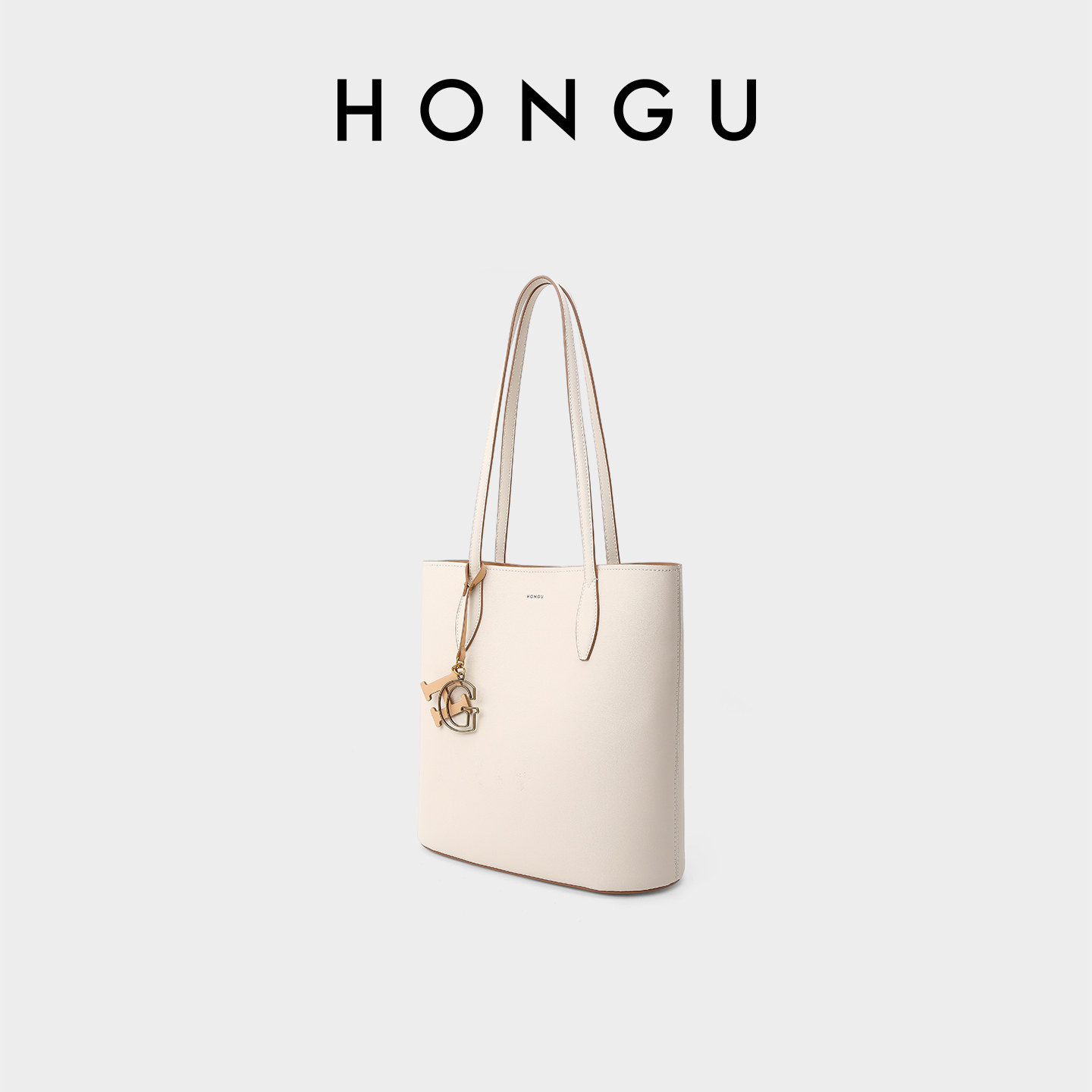 红谷包包女新款通勤牛皮单肩手提包时尚挂饰大容量托特包大包女包