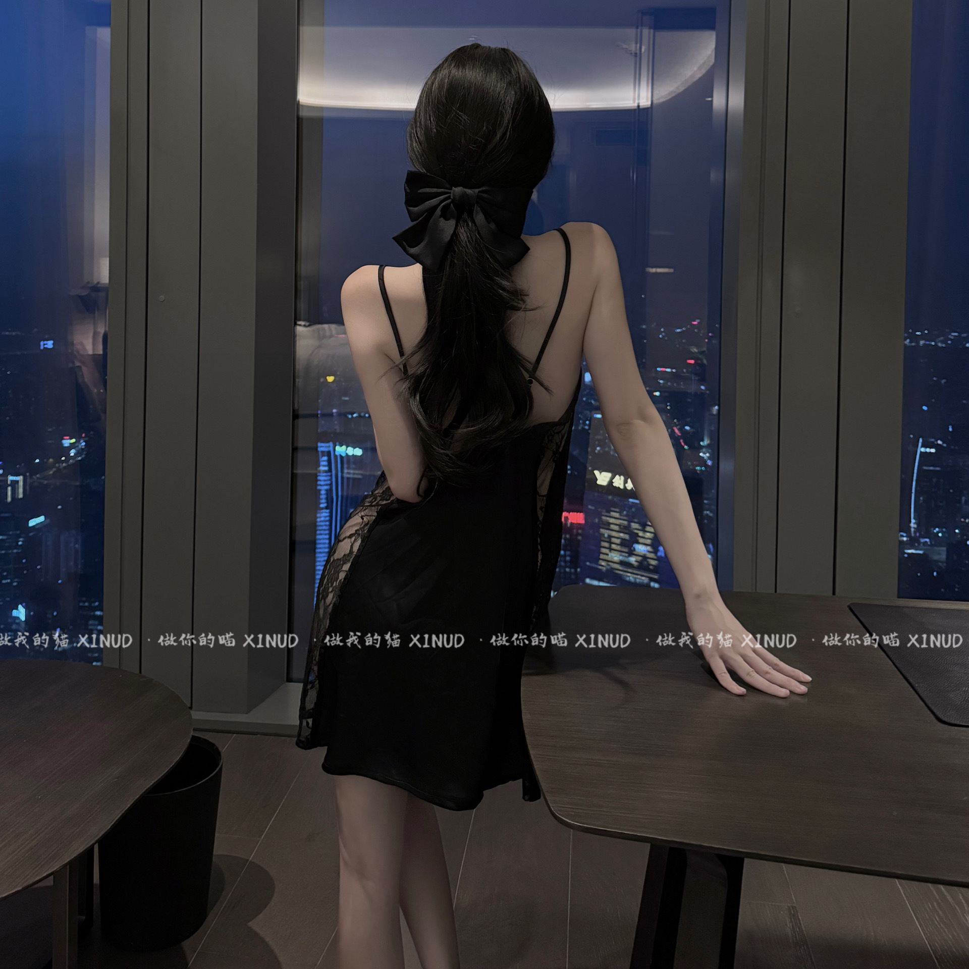 做你的猫:裙摆下的瘾*透视性感荡领显瘦网纱水溶花蕾丝吊带睡裙
