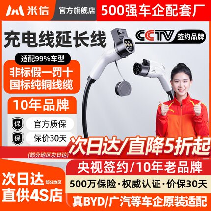 充电桩枪延长线新能源电动汽车32A7kw交流加长适用比亚迪广汽埃安