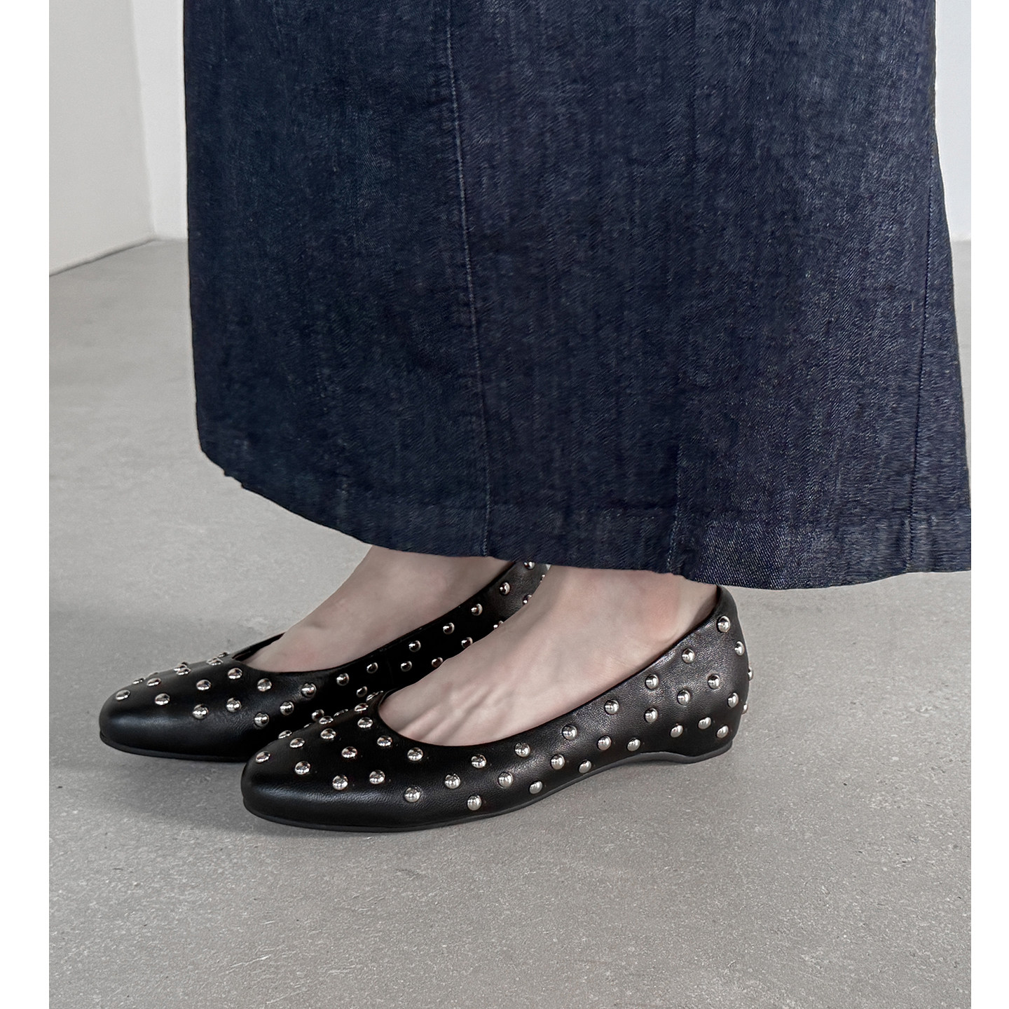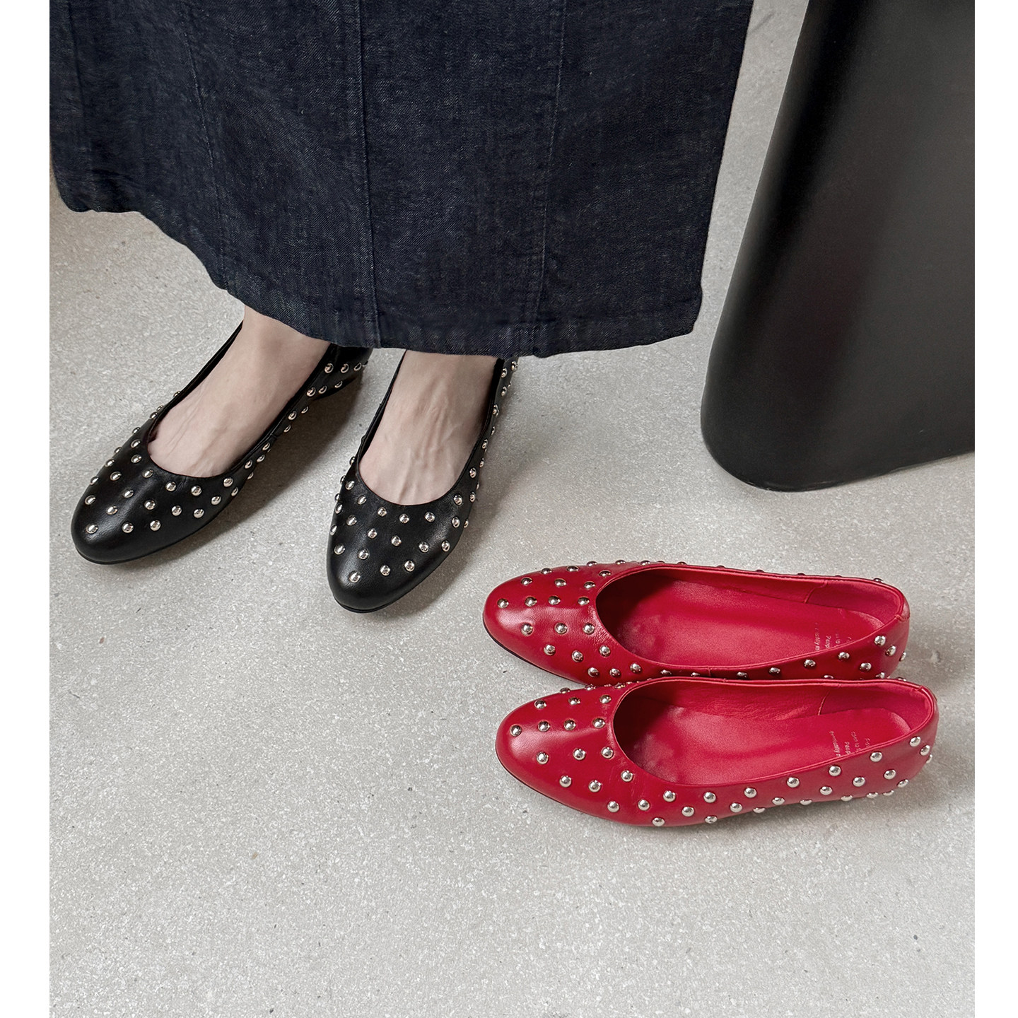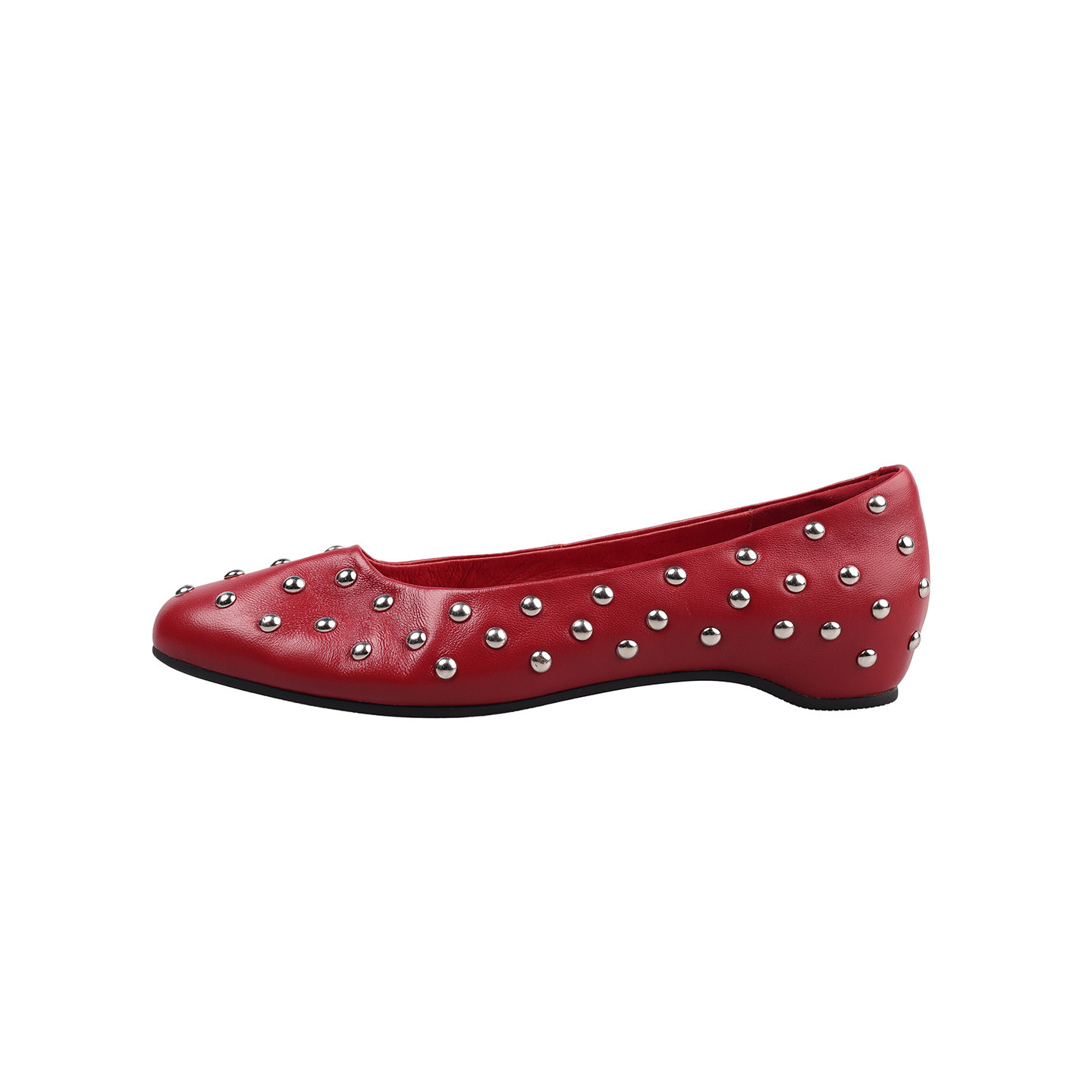 轻奢铆钉真皮小红鞋气质单鞋