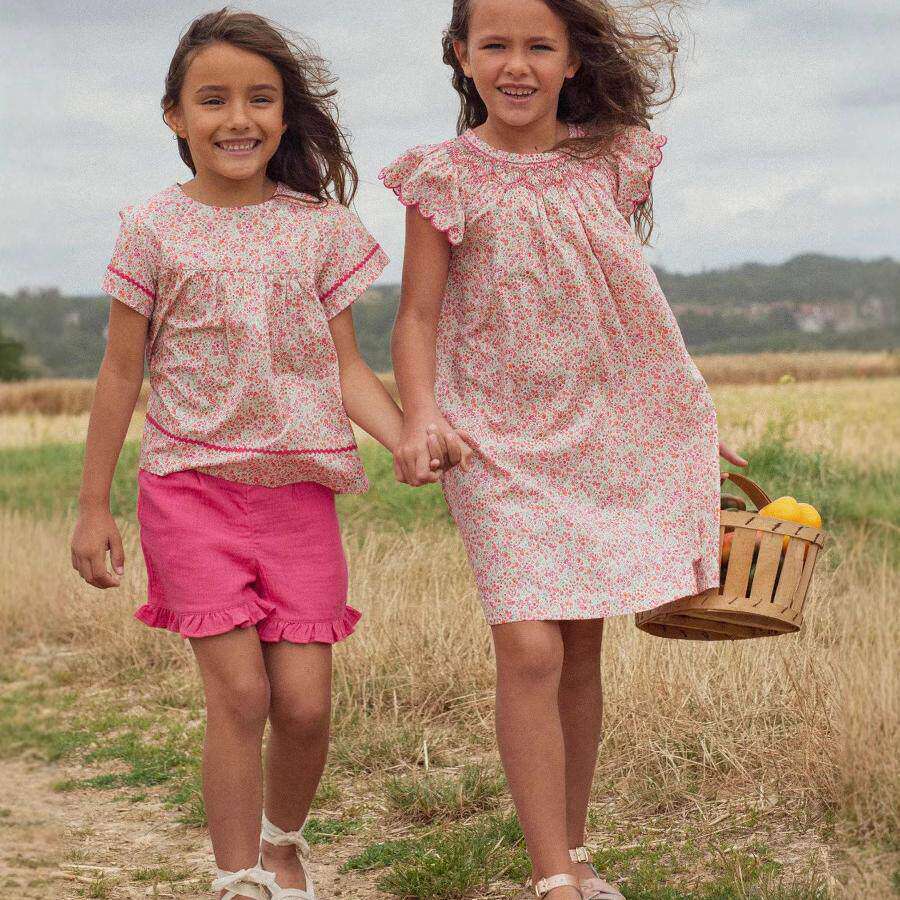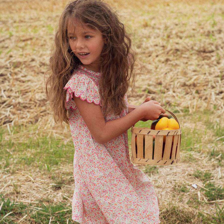 2026北欧风夏季新款红碎花长款短款女童连衣裙荷叶袖时尚轻薄裙子