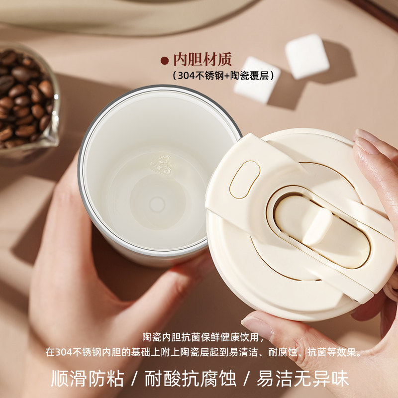 爱仕达陶瓷内胆保温杯小巧便携随行咖啡杯女生高颜值吸管水杯杯子