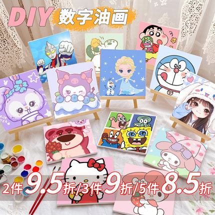 卡通儿童数字油画diy手工丙烯填色涂色画画小尺寸减压2026年新款