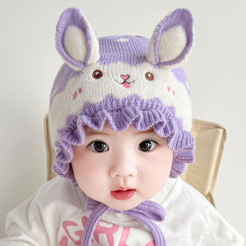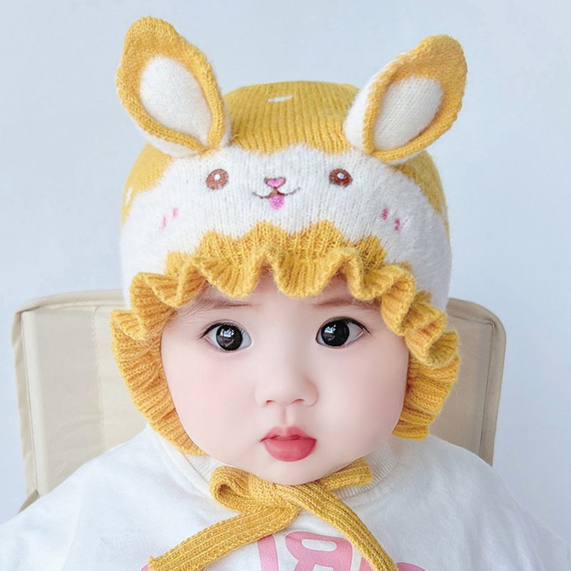 婴儿帽子秋冬季公主女宝宝针织毛线帽可小兔子婴幼儿女童护耳帽潮