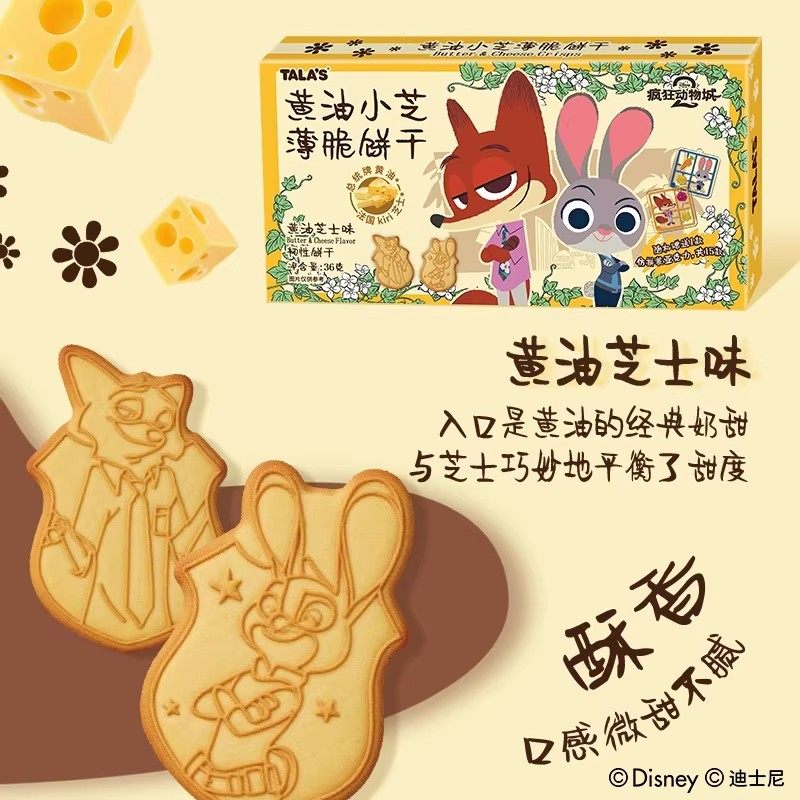 疯狂动物城饼干黄油小芝薄脆印花饼干芝士巧克力味迪士尼联名饼干