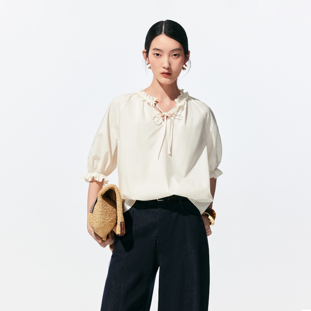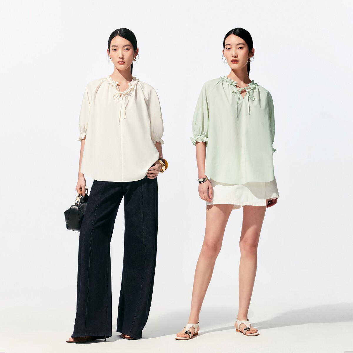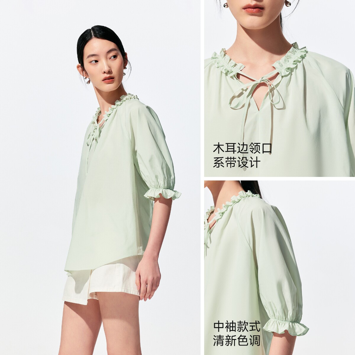 绫致Vero Moda衬衫女2026夏季新款含莱赛尔木耳边上衣温柔甜美