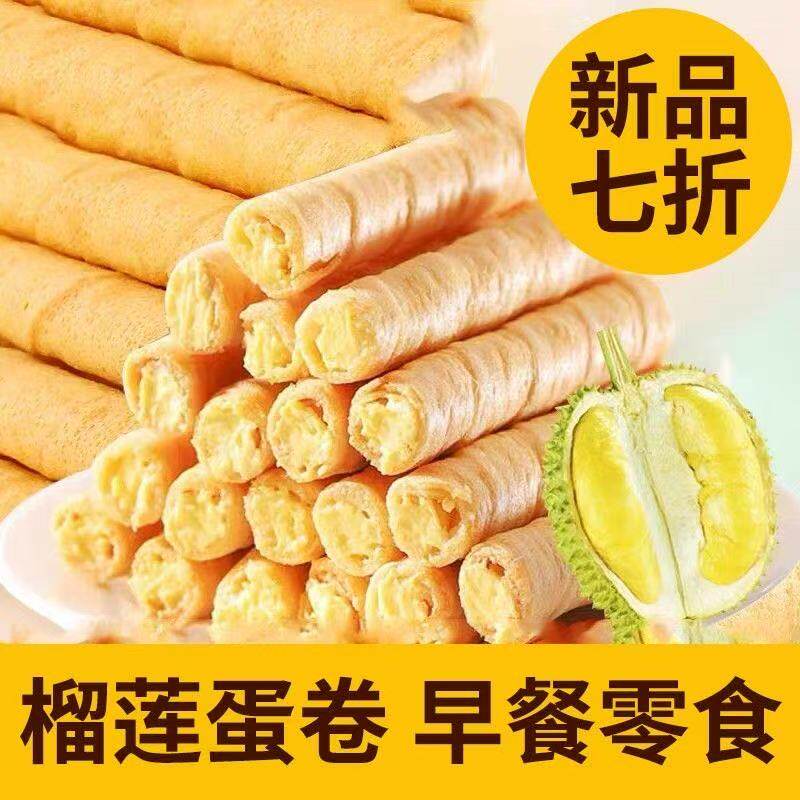 猫山王榴莲味蛋卷整箱夹心饼干休闲小吃办公室解馋小零食