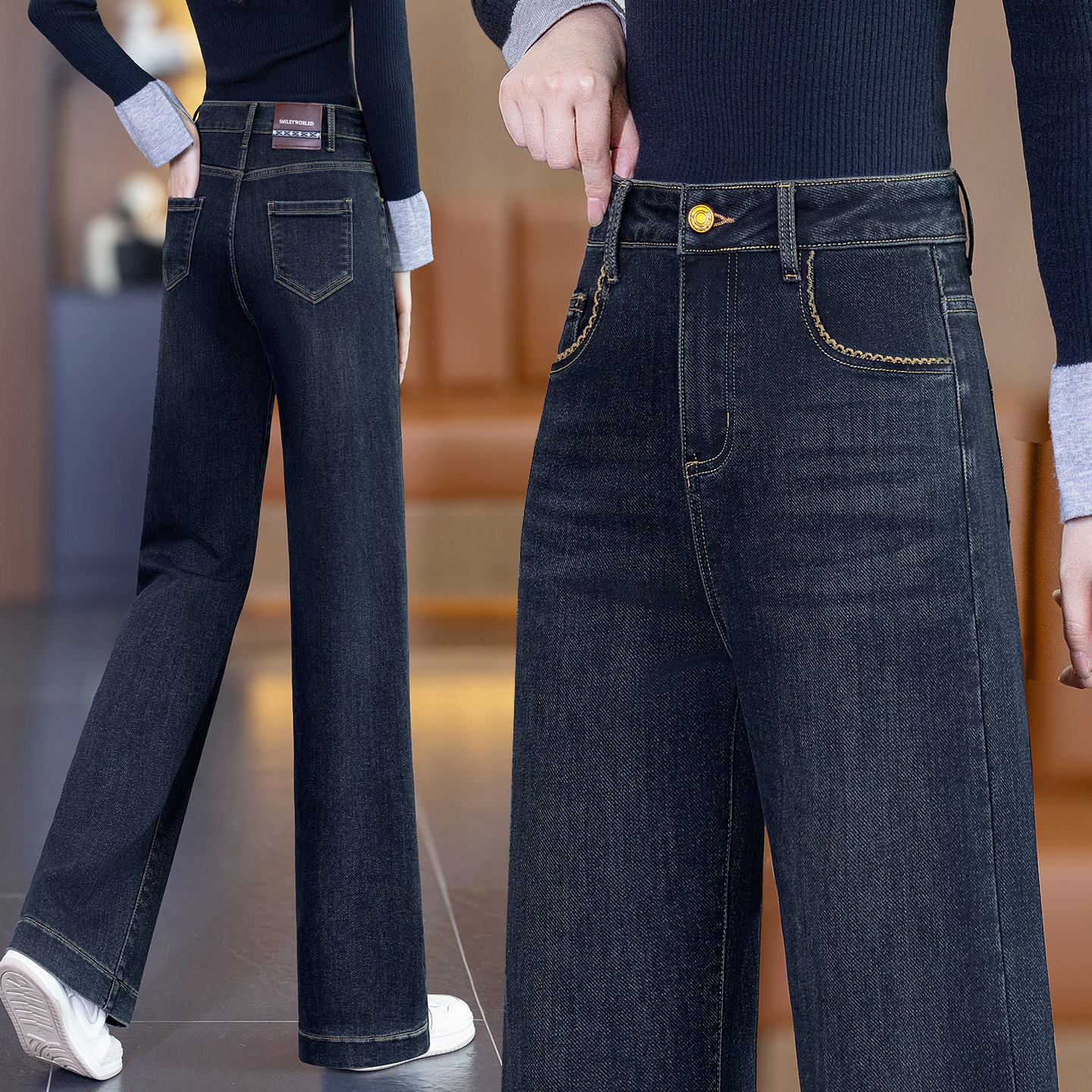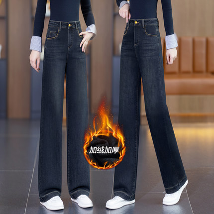 加绒窄版阔腿牛仔裤女2026直筒裤