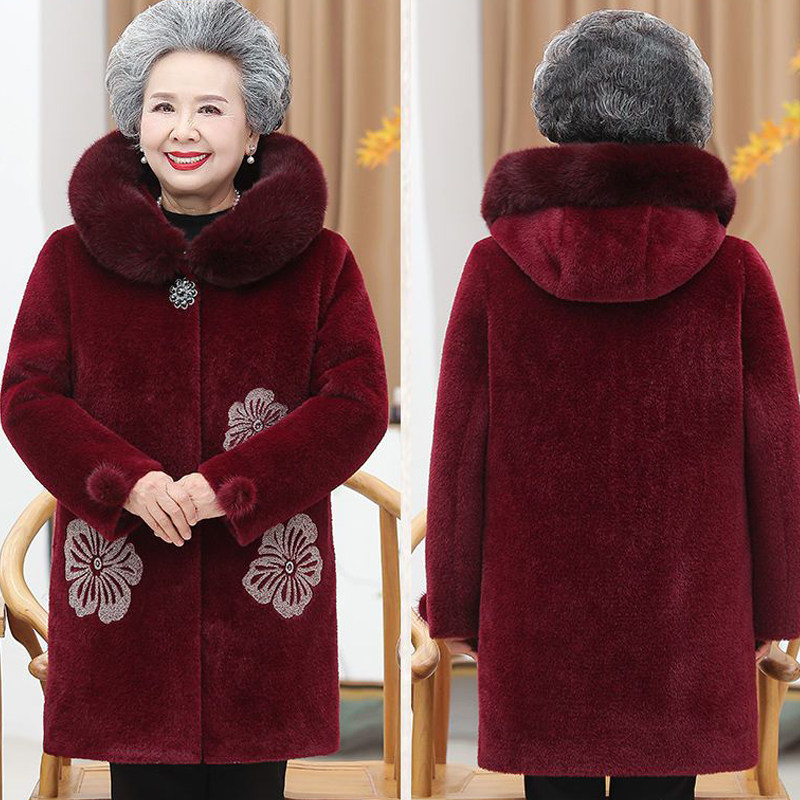 中老年人女妈妈冬装奶奶装毛呢外套老太太加绒老人高贵水貂绒上衣