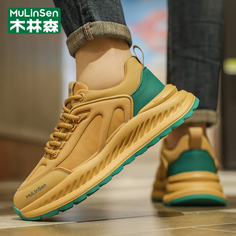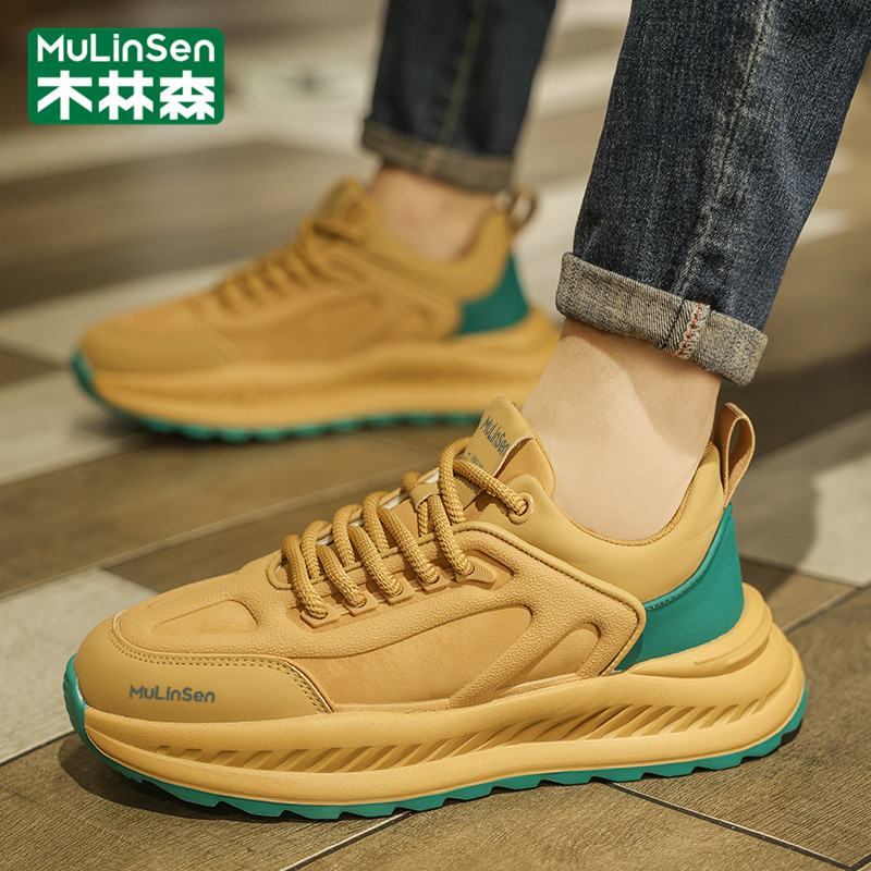 木林森男鞋秋冬季2025新款潮流百搭休闲运动跑步皮面厚底增高潮鞋
