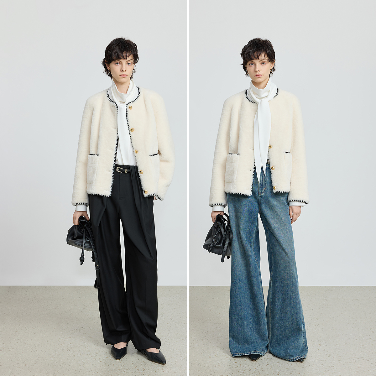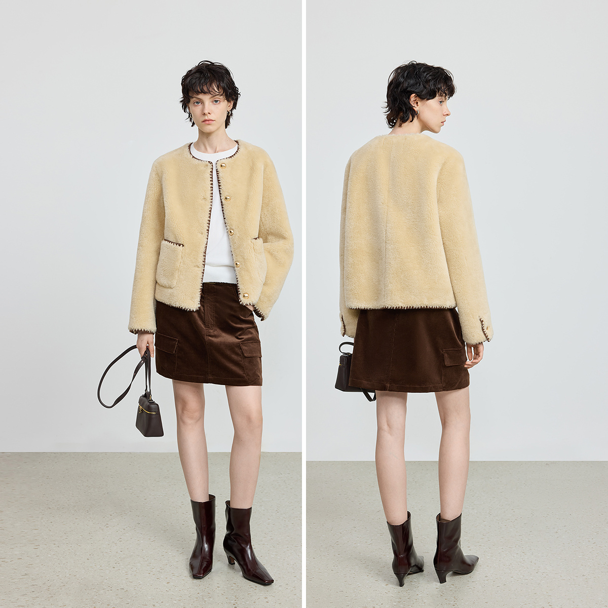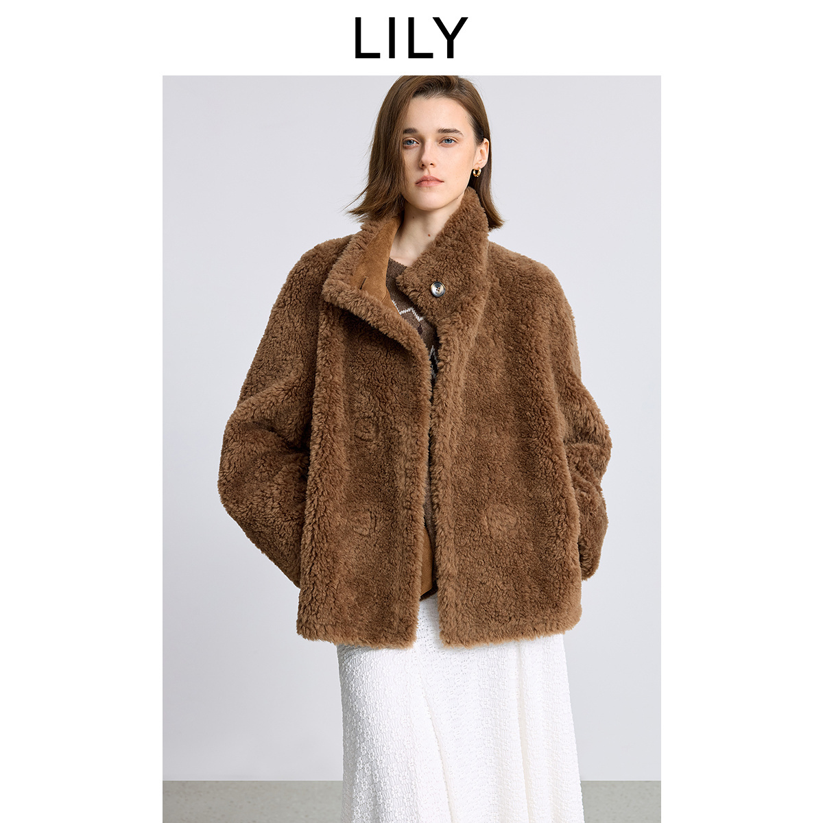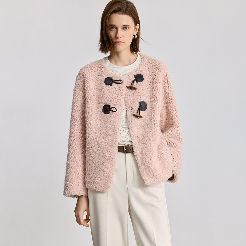 【李佳琦直播间】LILY短款法式小香风咖啡粉色毛绒外套