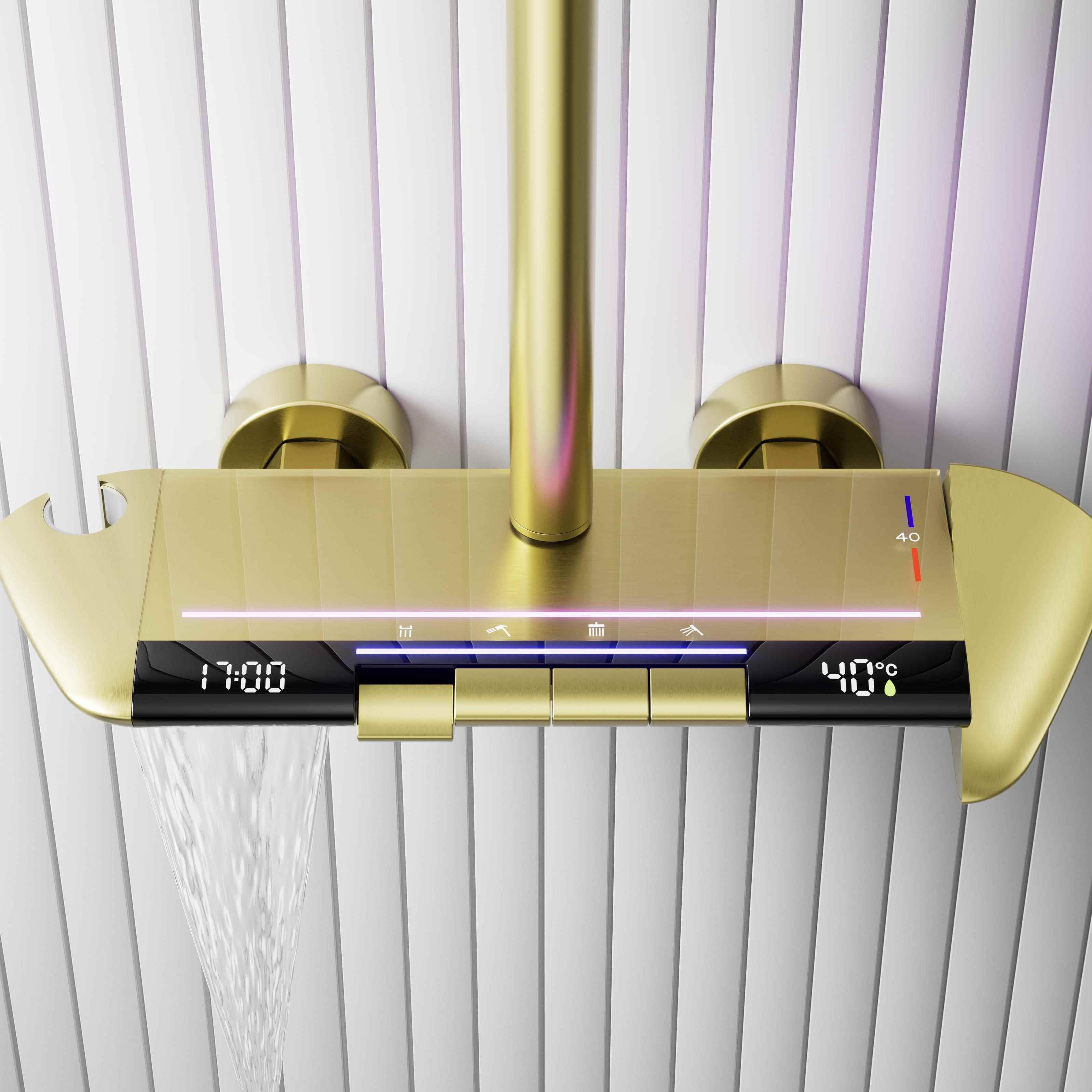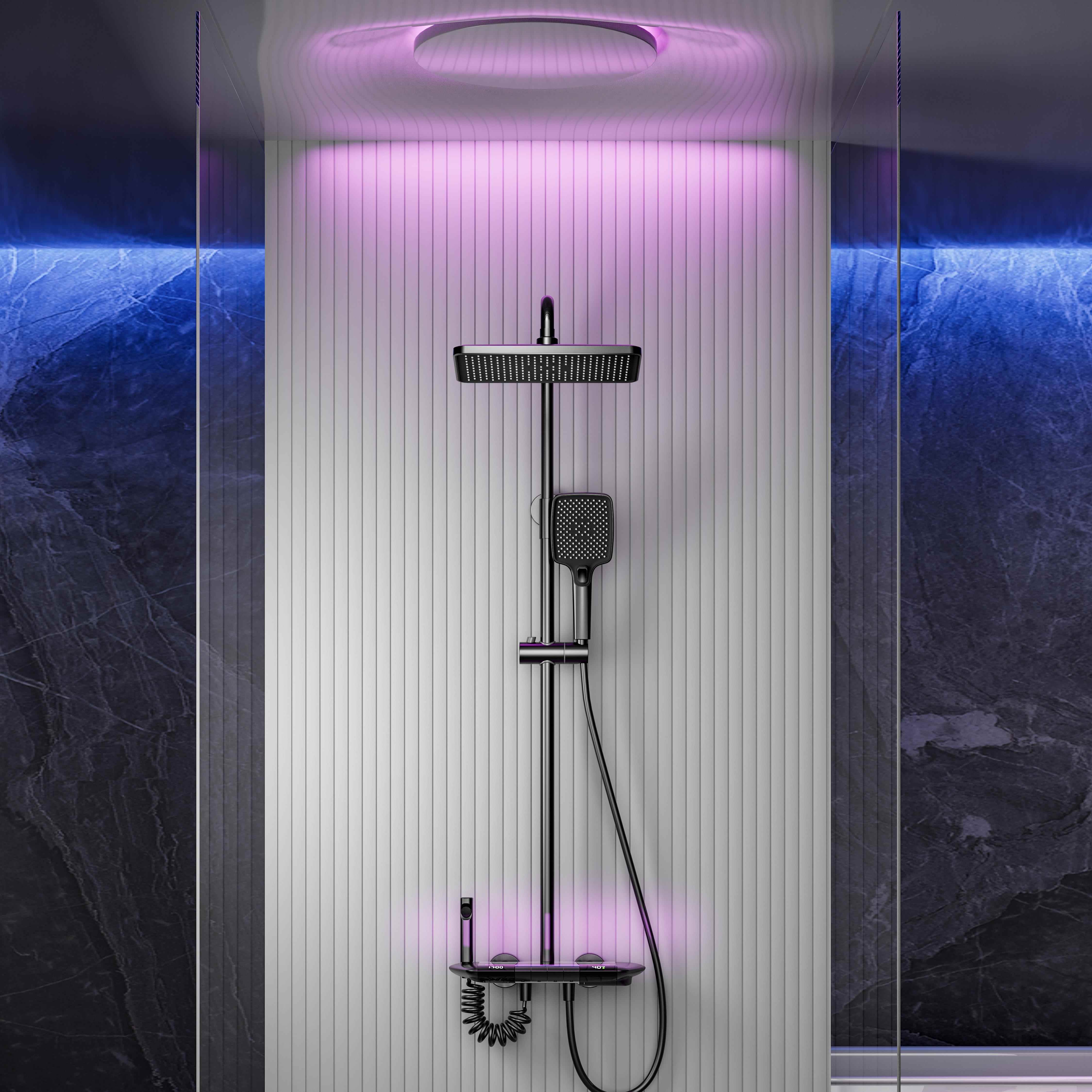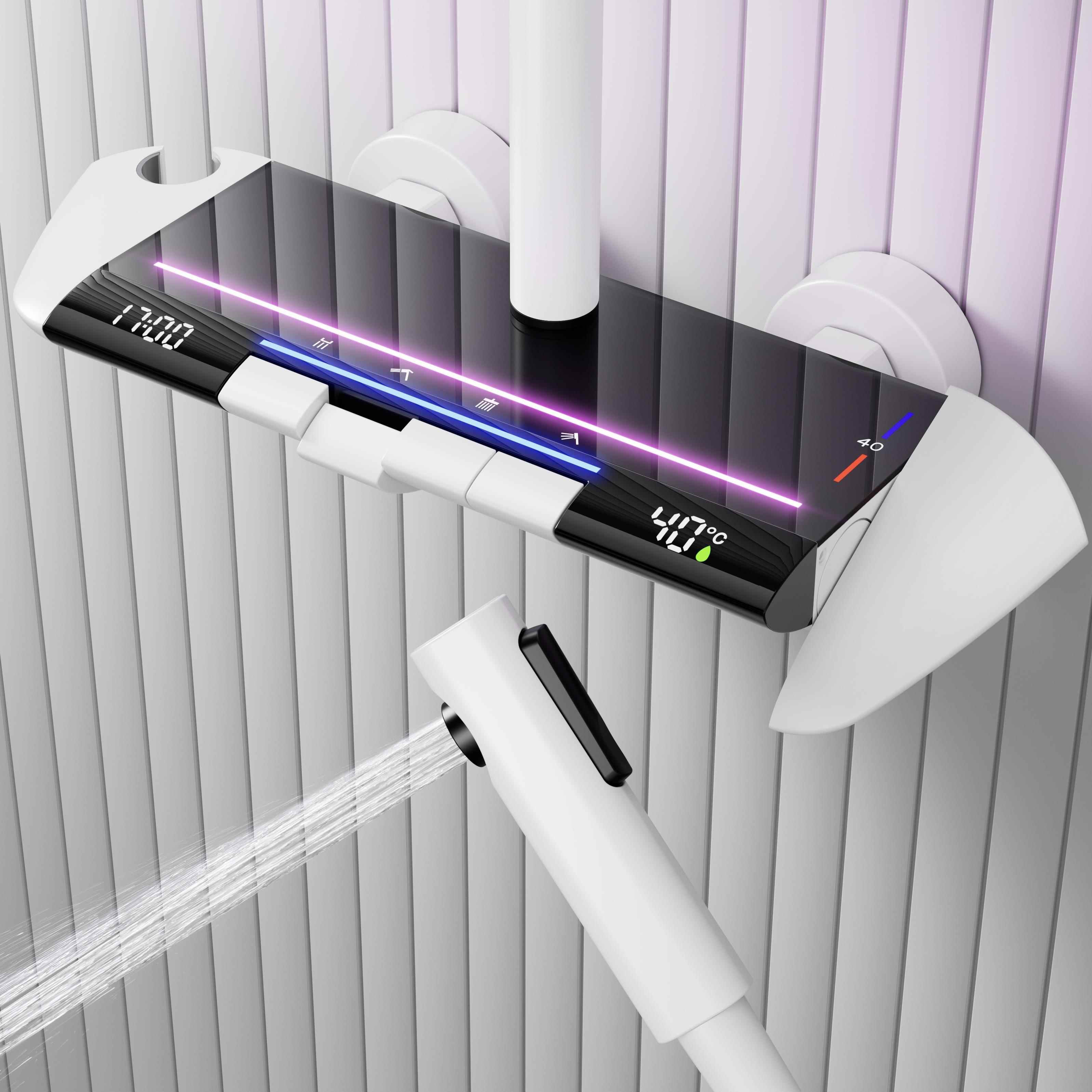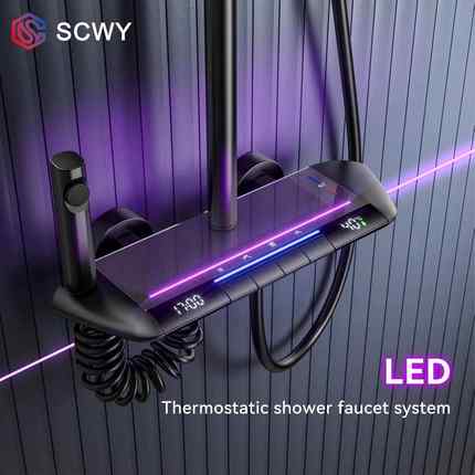 水彩卫浴SCWY太空舱双色氛围灯数显恒温冷热淋浴花洒套装家用增压