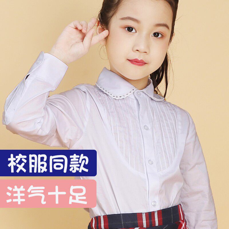 女童白衬衫长袖洋气学院风校园款纯棉演出打底衫中大童小学生校服