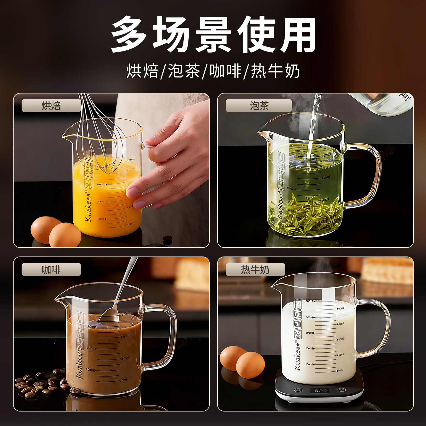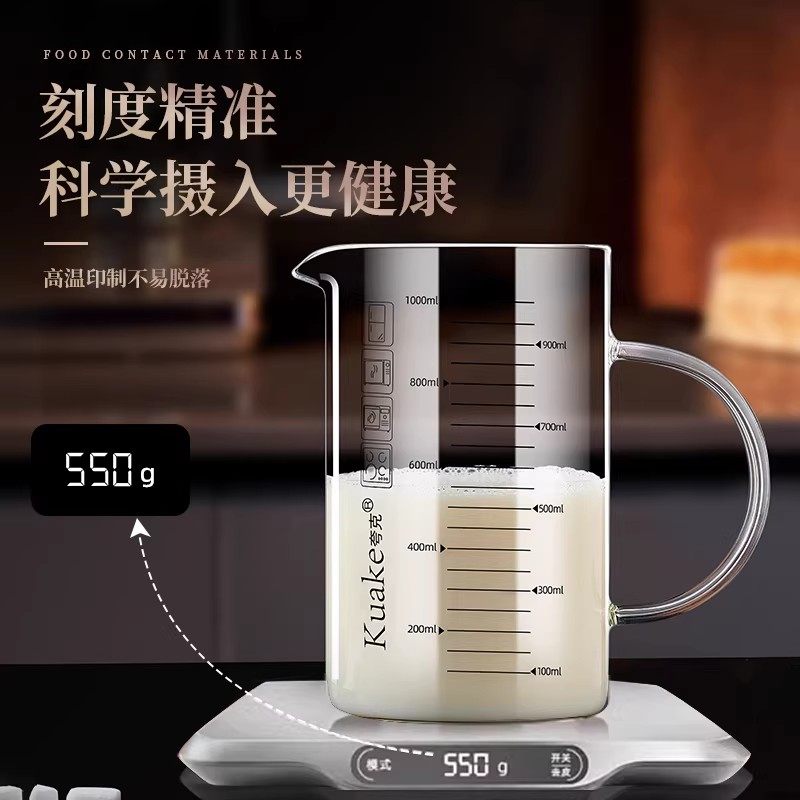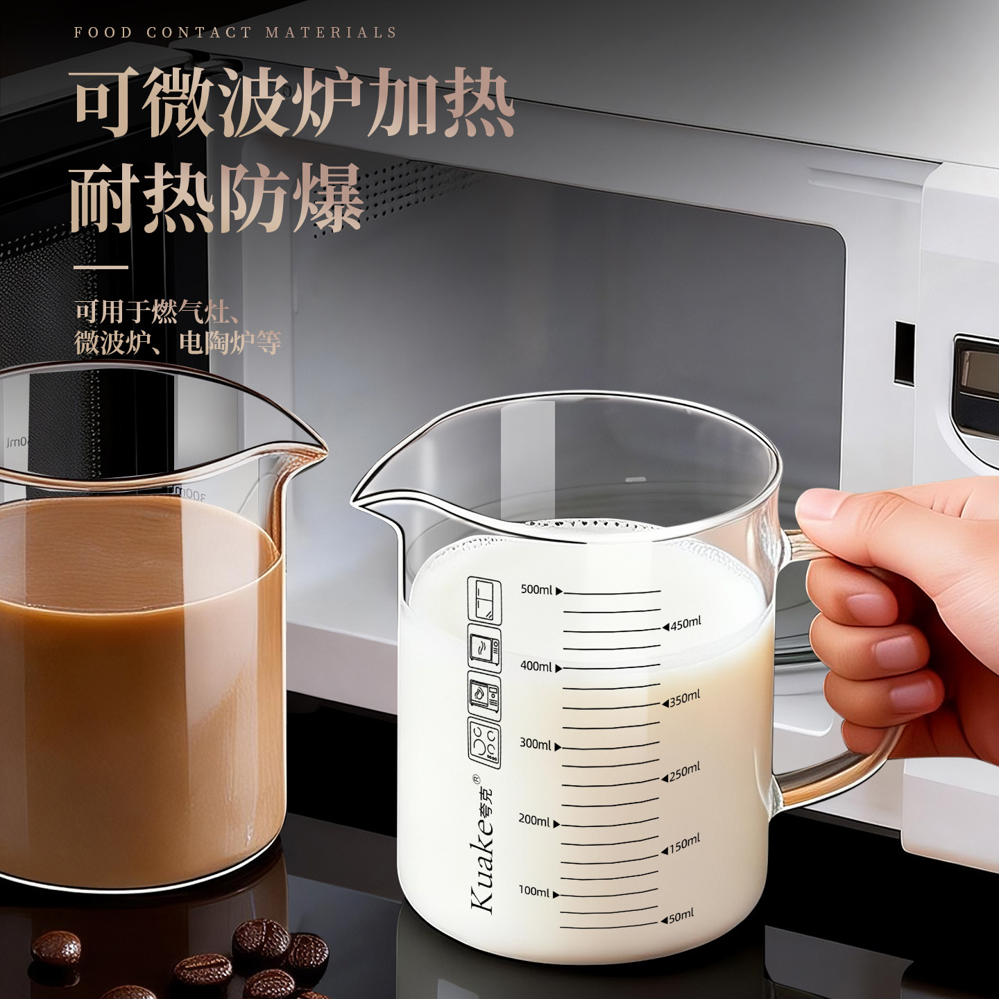 刻度牛奶杯玻璃早餐可微波炉加热牛奶专用杯烘焙带刻度量杯食品级