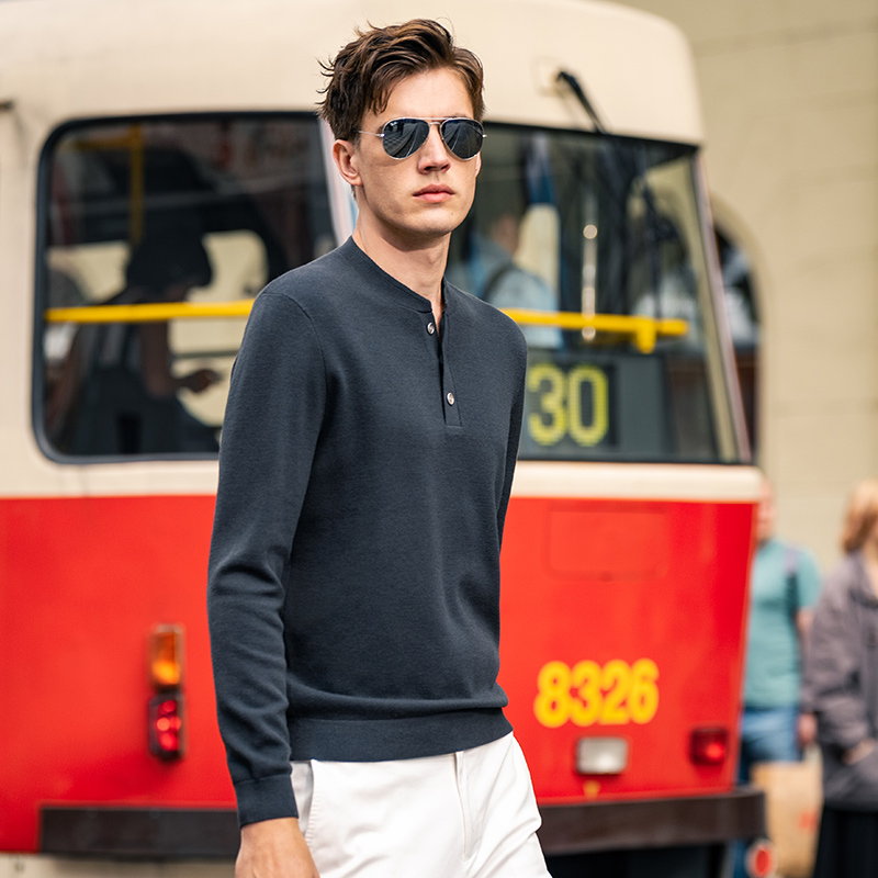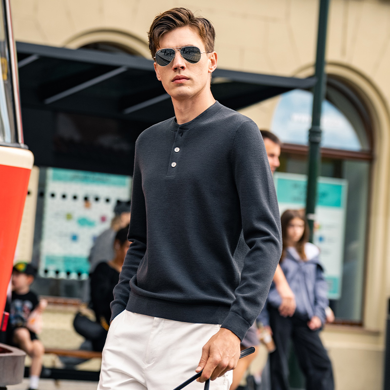 布先生轻奢长袖t恤羊毛衫三粒扣棒球领男款肌理感秋冬保暖PT15589