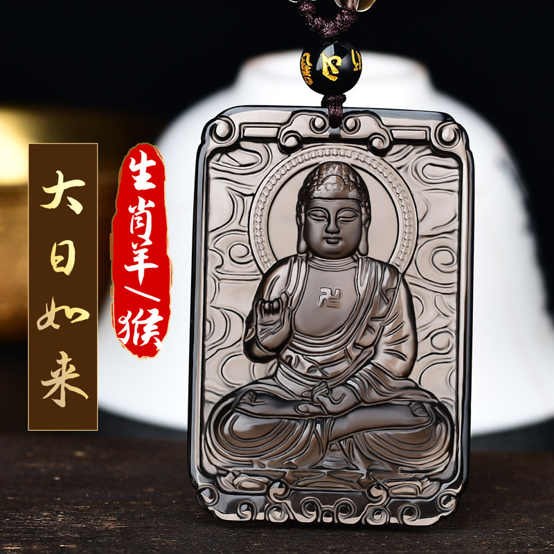2026年生肖属羊猴守护神大日如来本命佛黑曜石吊坠项链男女礼品