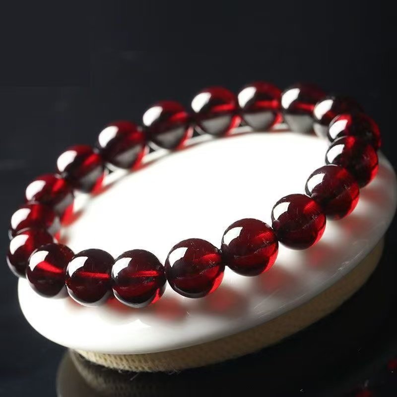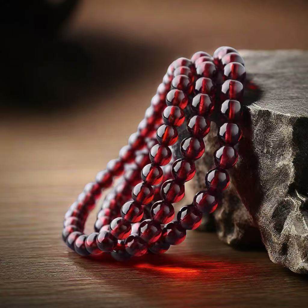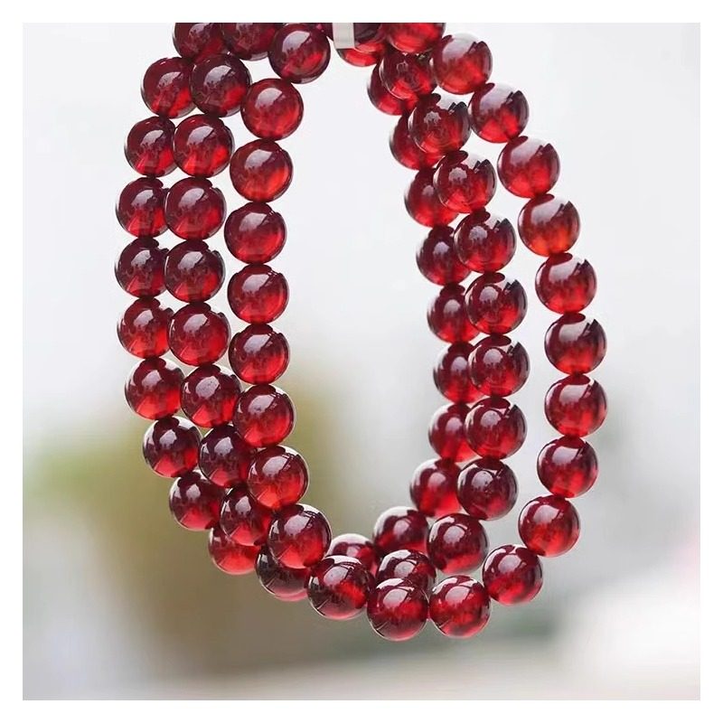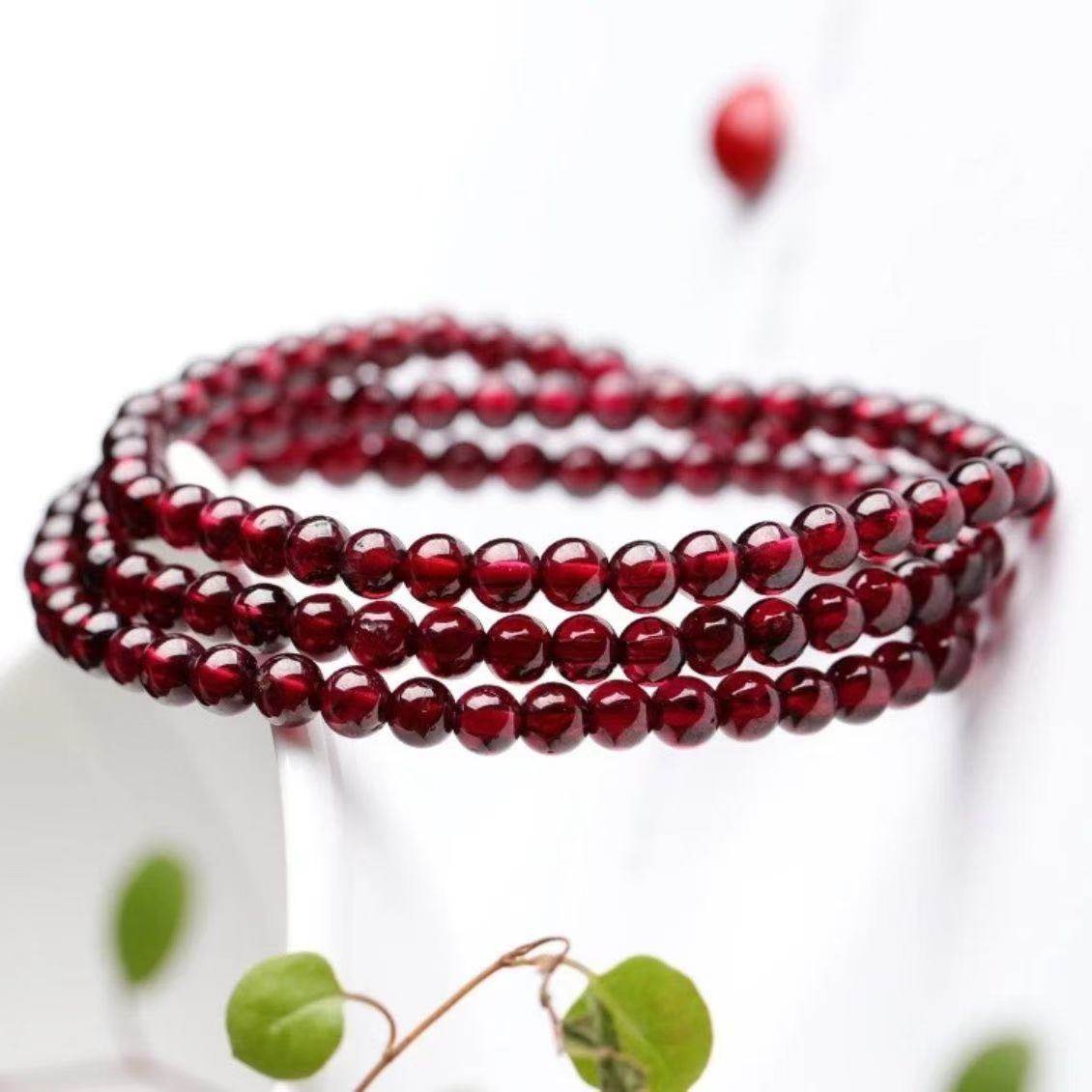 石榴石仿全净体手链三圈散珠子手串女平替单圈酒红色收藏级
