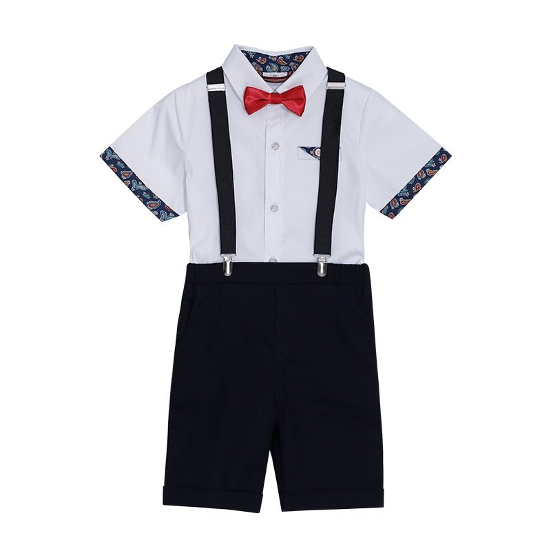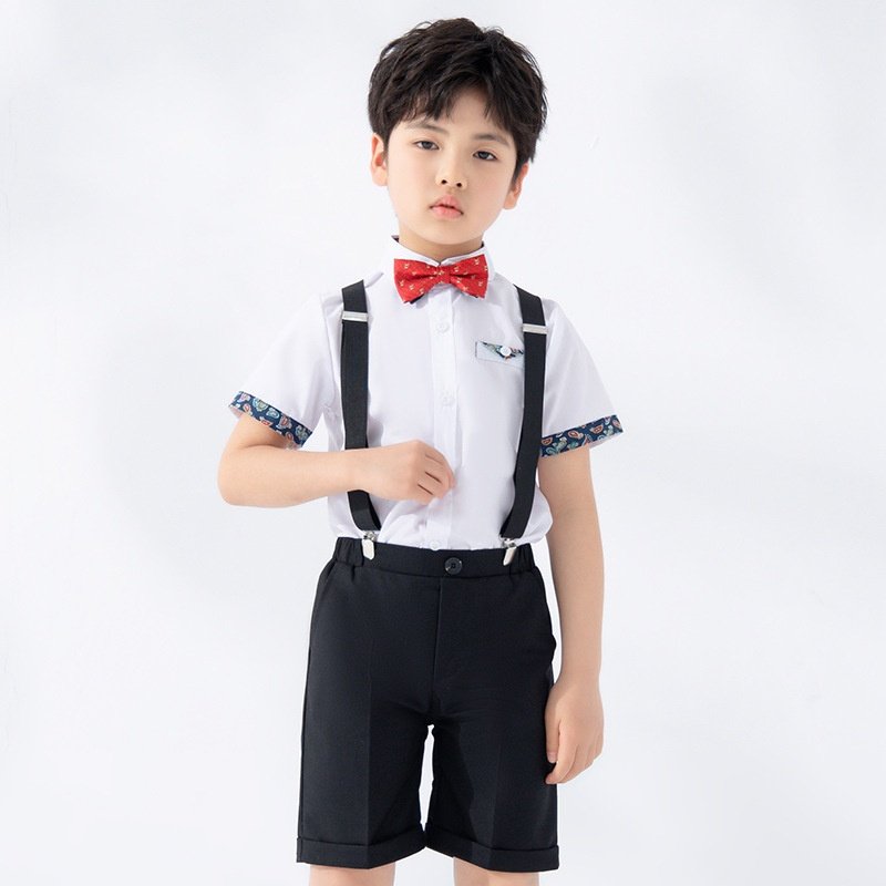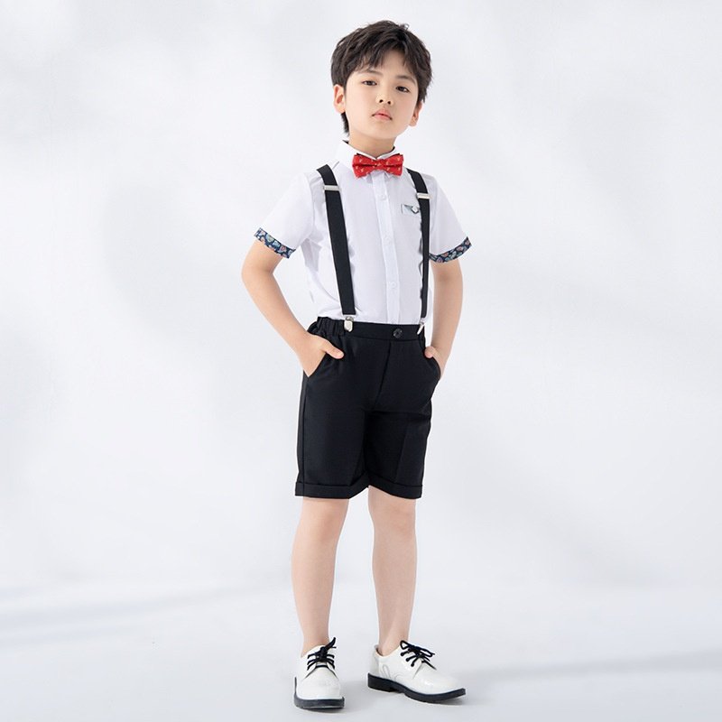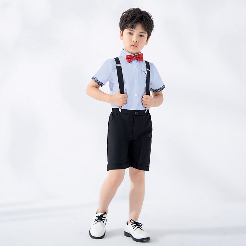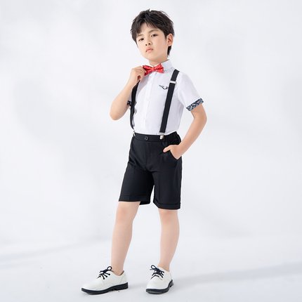 儿童英伦演出服夏季新款短袖背带裤套装男童主持合唱舞台摄影礼服