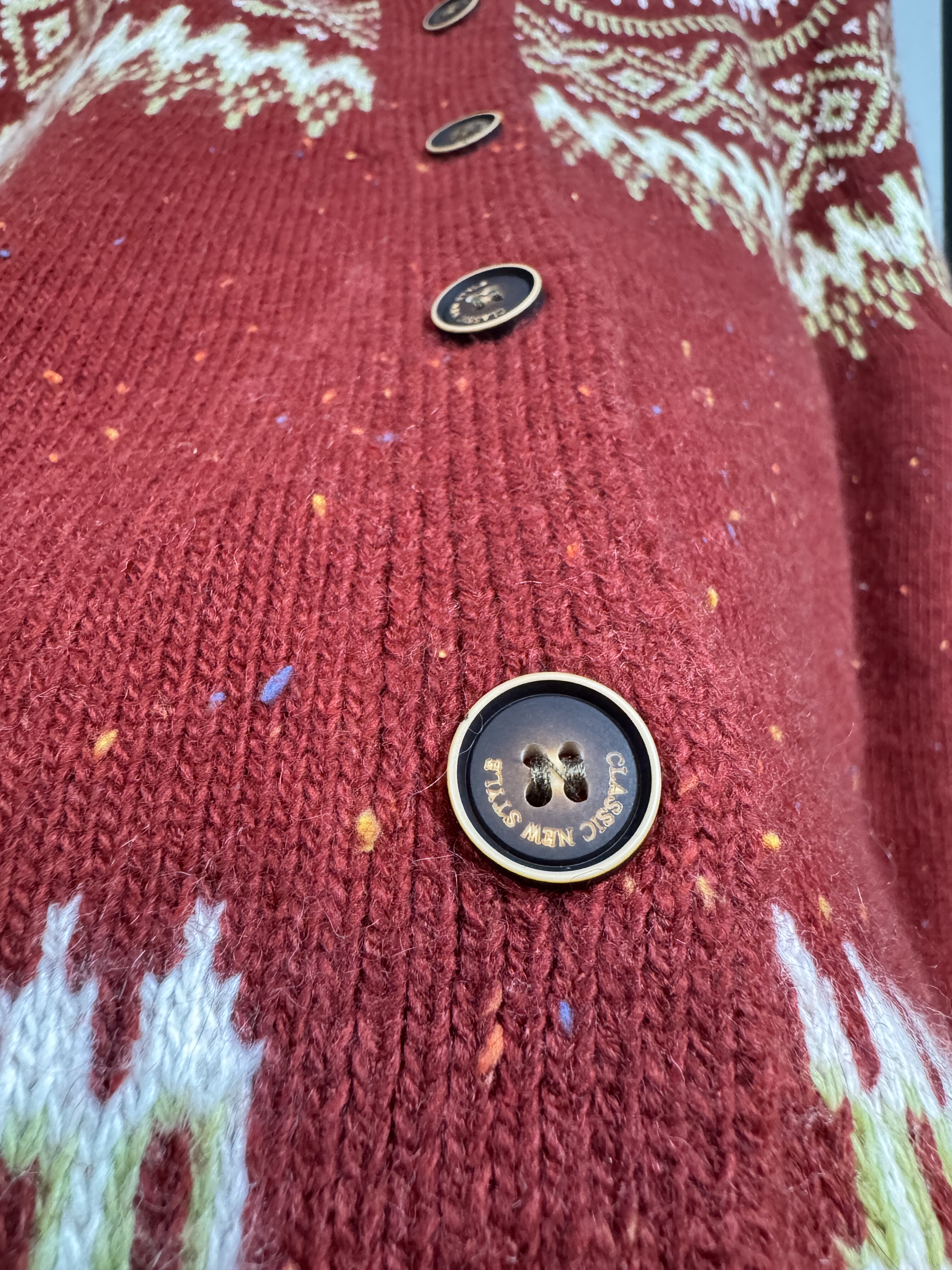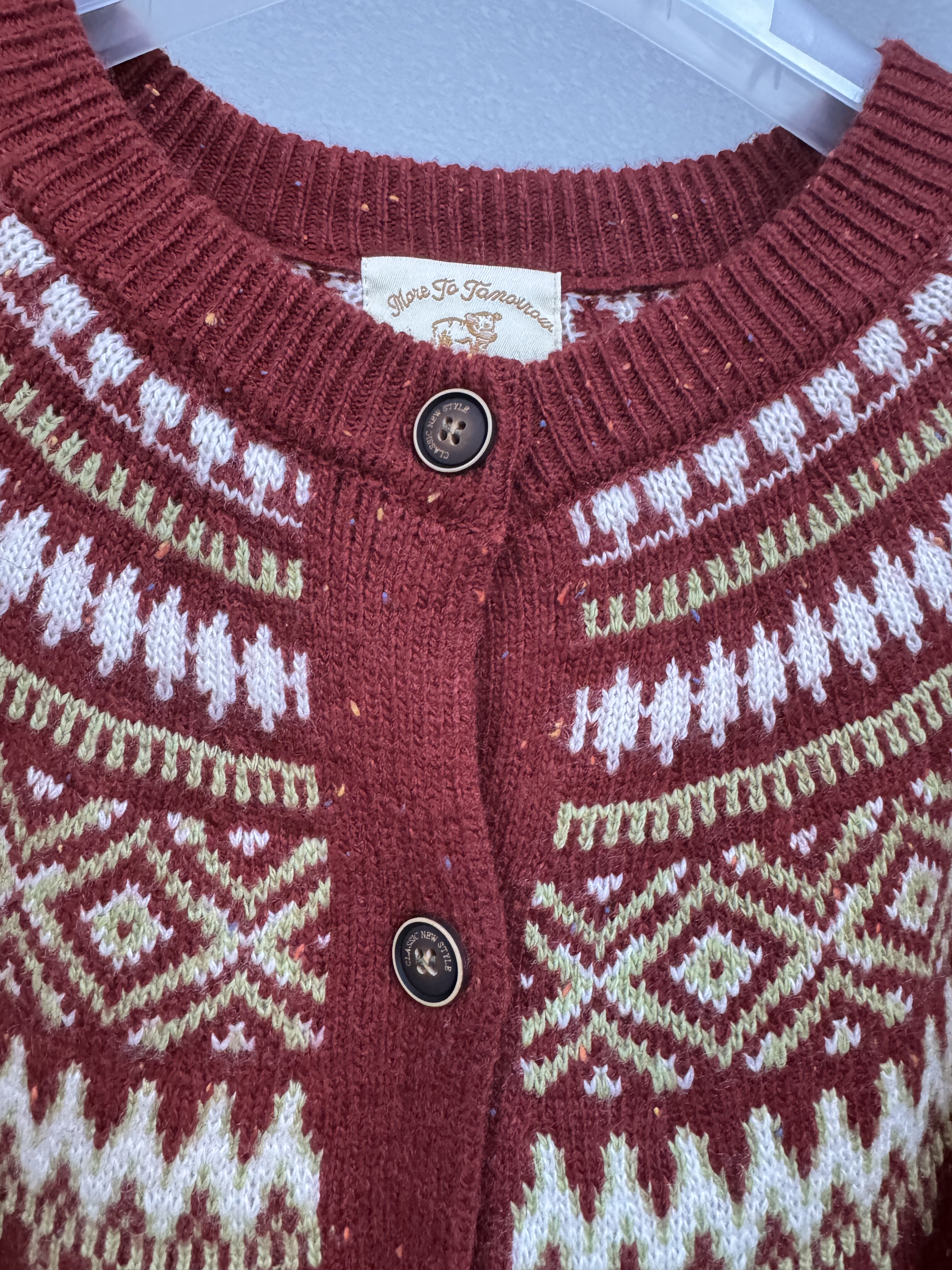 红色羊毛费尔岛圣诞毛衣外套女秋冬冬季新年加厚高级感针织开衫