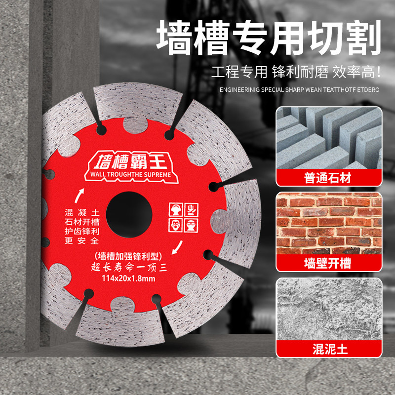 开槽切割片混凝土墙瓷砖石材114/156/190角磨机水电开槽片金刚石